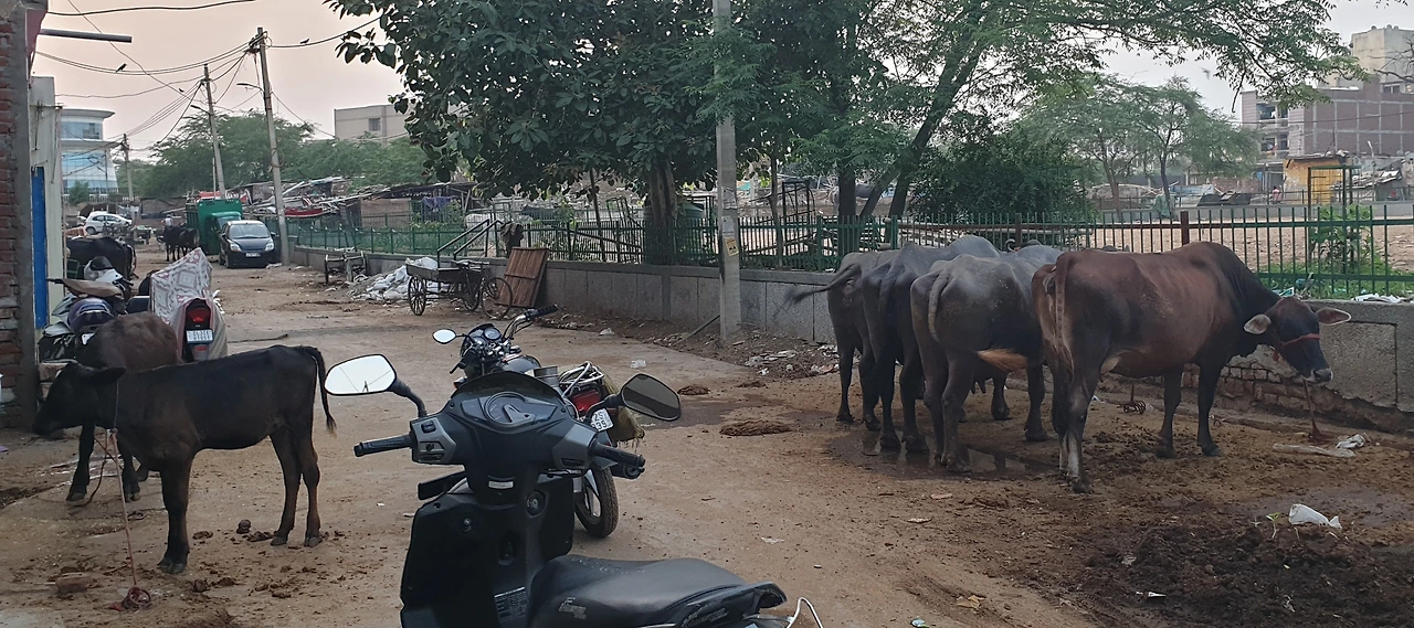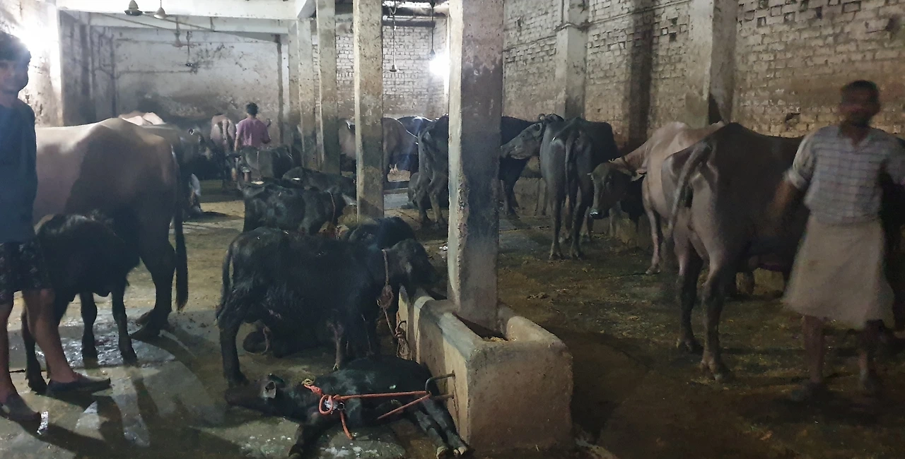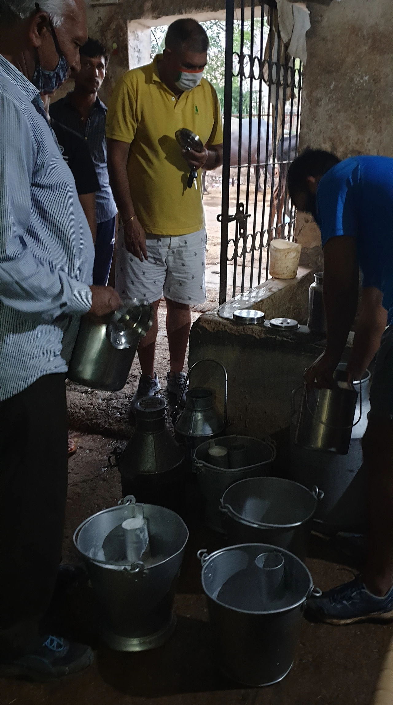 그 동네의 길다란 한 건물 거의 다가 버팔로 소들을 키우는 곳입니다. 놀랐습니다. 시커먼 축사가 건물의 그라운드 플로아에 자리잡고 막 짜낸 우유를 퍼서 가지고 온 스탠 우유통에 담습니다. 1리터에 80루피라니 우리가 사먹는 우유보다 20-25루피 정도가 더 합니다만, 내추럴 우유니 사람들이 먼데서도 찾아오는 것이겠지요.