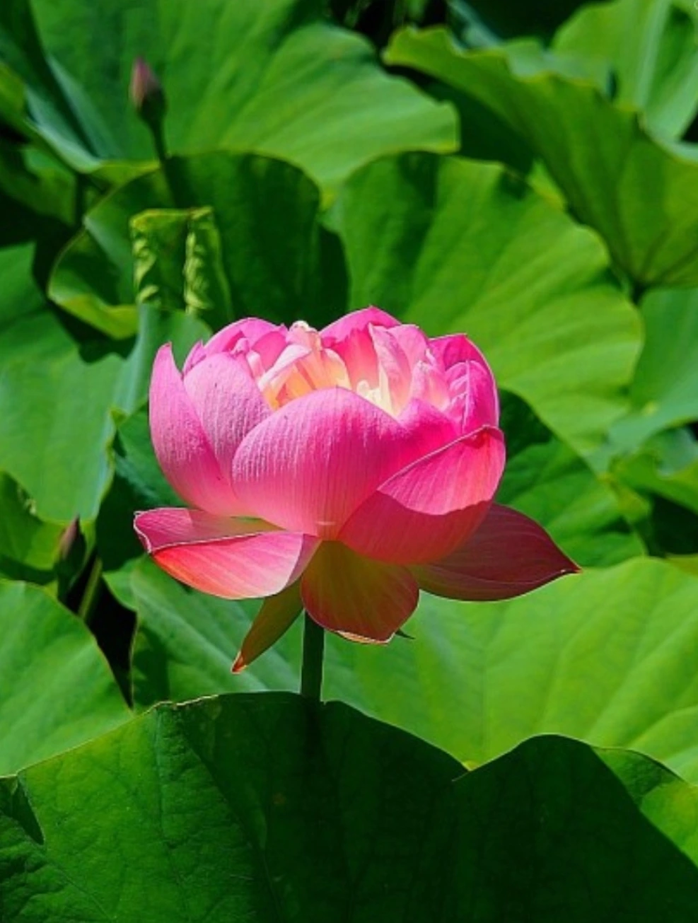 심은 년도에는 꽃이 안 핀다고 합니다. 그래도 쑥쑥 자라는 둥근 잎사귀를 보면 마음의 평화가 올 것 같아요.물이 땡그르르 굴러가는 소리까지 들리는 것 같지요?