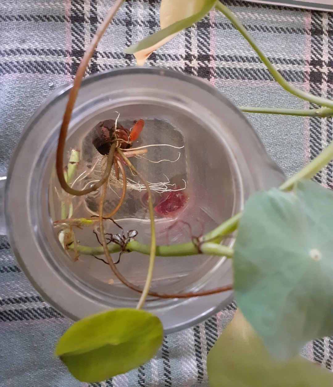 매일 물을 갈아주어야 합니다. 가끔 달걀껍질도 넣어주었지요. 어디서는 영양제를 한방울씩주라고 되어있어서요... 5일 만에 커진 연하나는 몰리가 자라는 화병에 넣어주었어요. 심심하지 말라고... 그런데 잎사귀가 밖에 둔 것보다 안크는 거에요...