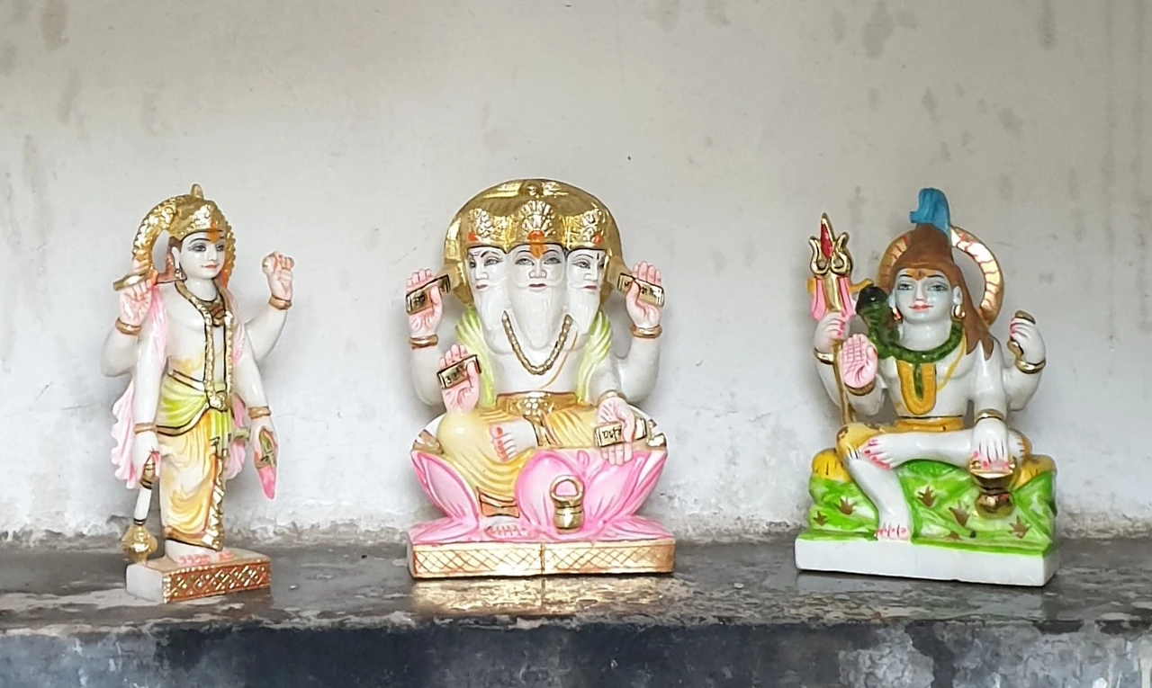 예전의 삼신상, 비슈누(보전), 브라흐만( 창조), 시바(파괴)를 상징합니다.