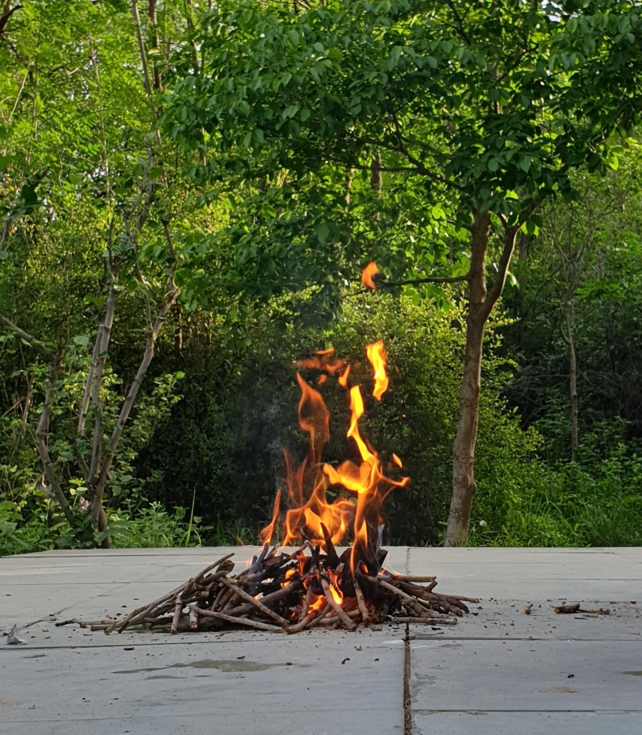 마른나무 조각들을 모으고 기(ghee정제 버터)를 뿌려서 불을 지피는 의식을 합니다.