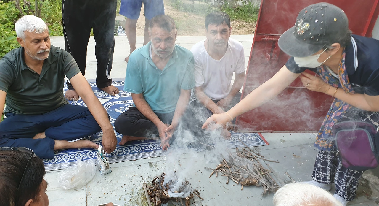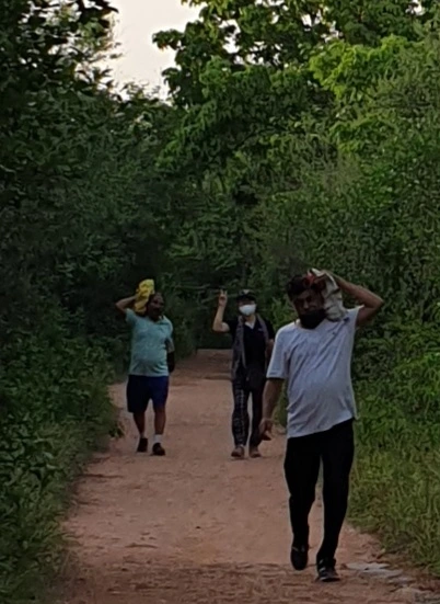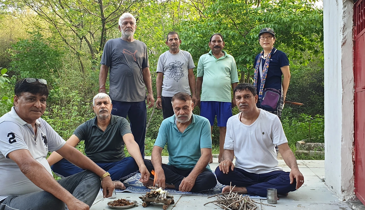 아라밸리 새벽 걷기 반환점을 지나 되돌아가려는데 마히팔푸르에 사는 갱들 서너 명이 어깨에 짐을 지고 오고 있었습니다. 평소에는 새나 쟈칼 등 들짐승 먹이를 가져오곤 했는데 이번엔 꾸러미가 꽤 무거워 보였습니다. 그중 우리랑 마음으로 대화하는 나레쉬가 템플에 같이 가자 합니다. 우리는 영어로 그는 힌디를 하는데 희한하게 간단한 소통이 되는 좋은 사람입니다. 님나무도 잘라서 수줍게 내밀고 바블이나 다른 야생과일도 따면 우리에게 나눠주는 좋은 분이지요. 며칠 전 담석증으로 수술했다는 소식을 들은지라 걱정이 되어 물어보니 괜찮다고 합니다.