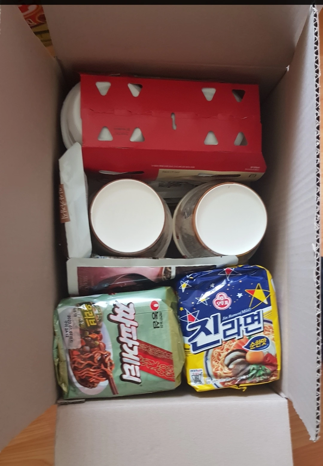 수정합니다. 격리 8일째되는 어제, 위의 물품이 도착했답니다. 라면과 햇반, 레토로트 파우치등 먹거리 위주로 한박스 도착했습니다.