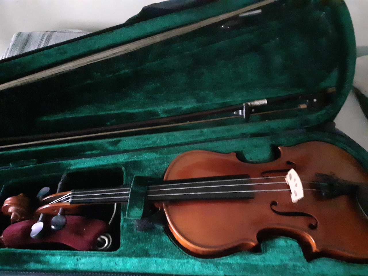 바이올린은 중국의 스코트 제인데 3/4 사이즈고 참 괜찮은 바이올린입니다. 아들이 쓰는 것은 최고로 구해주려는 부모의 맘이거든요. 마침 G현이 없는데 챙겨드리려고 해도 델리로 와서는 바이올린 현 가는 데를 모릅니다. 가네시선생님께 여쭤보라고 했습니다. 그리고 4/4 사이즈의 한국 바이올린은 바이올린 명장이 만든것이고 지인에게서 받은 것이라 제가 사용하려고요... 과거 팔기 뭐해서 필요한 학생들에게 빌려주곤 했습니다.