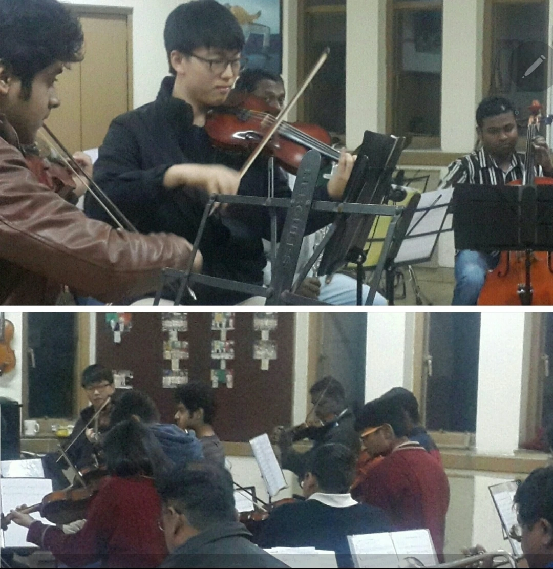 바이올린으로 오케스트라 활동을 몇 년간 했는데 가네시선생님께서 아들을 믿고 '델리 커뮤니티 오케스트라'라는 것을 만들어 다년간 리더로 활약했습니다.