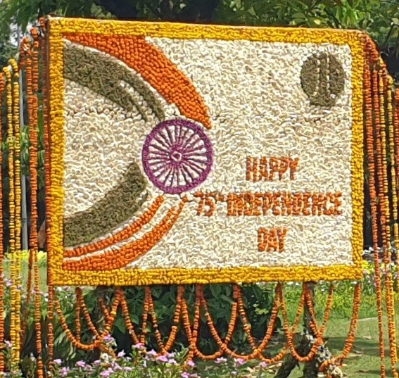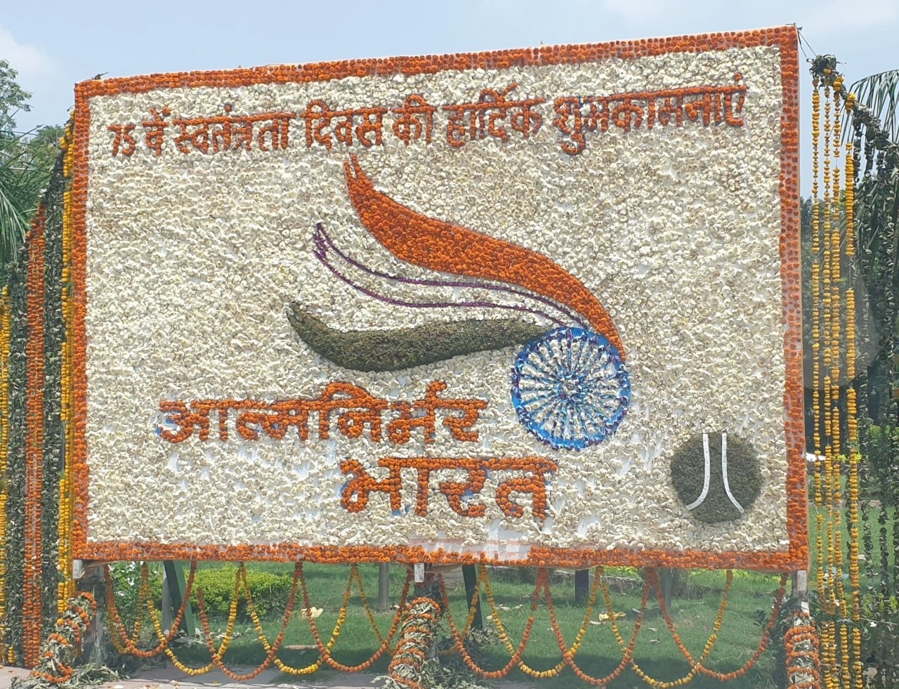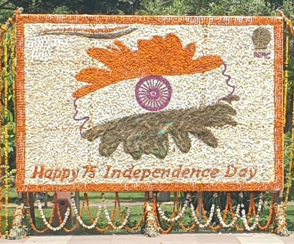 8.15 광복절, 델리 중심지를 돌다보면 생화로 장식한 가두판을 보게된다. 생화로 전체를 꾸미면서 갖가지 문양의 디자인들을 모두 수작업으로 처리했으니 그 정성이 보통이 아니다. 물론 생화제작 전문 agency가 용역을 받아 만든 것이겠지만, 기념일이나 귀빈 방문한다고해서 매번 생화로 장식하는 것은 아니다.