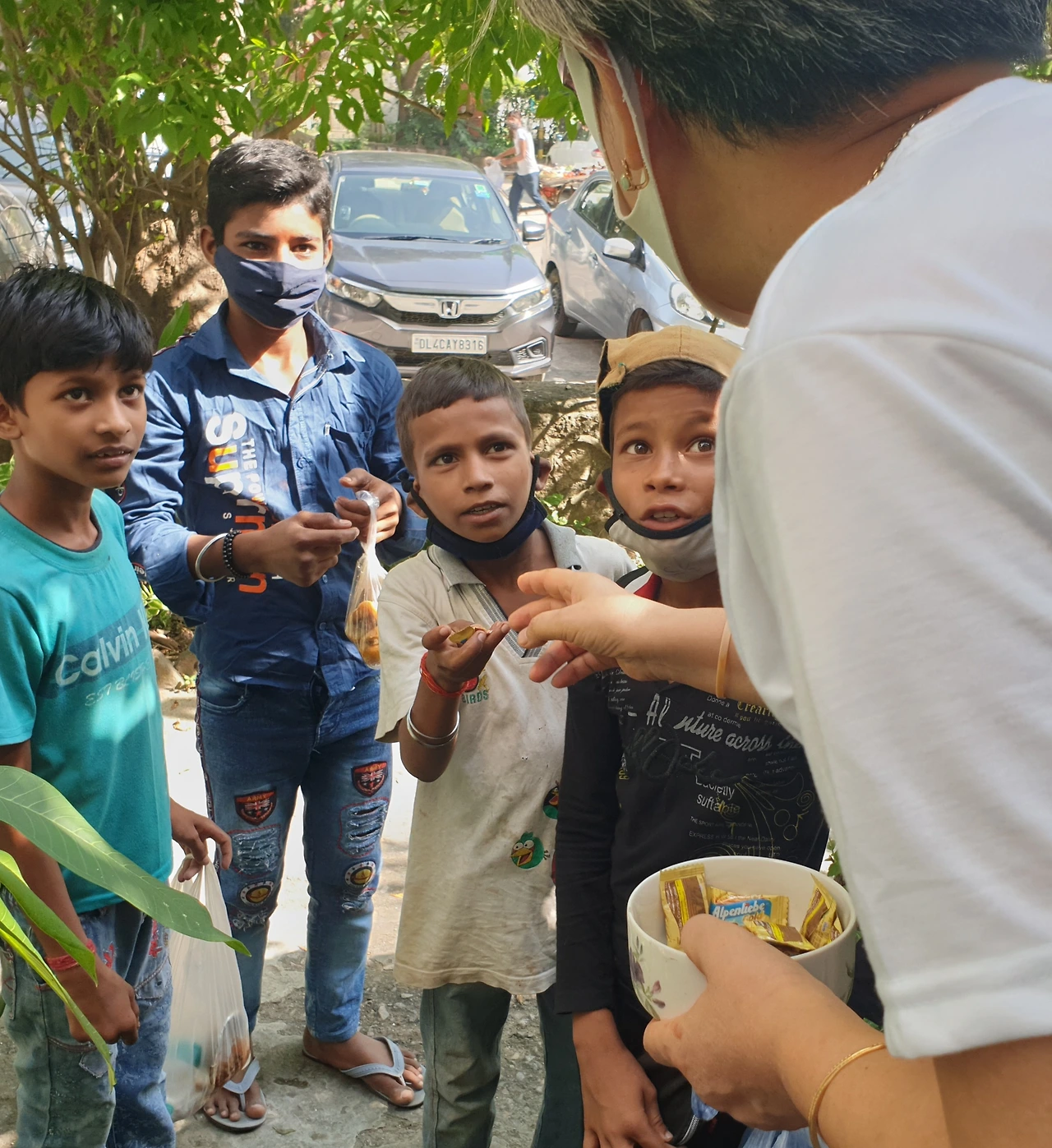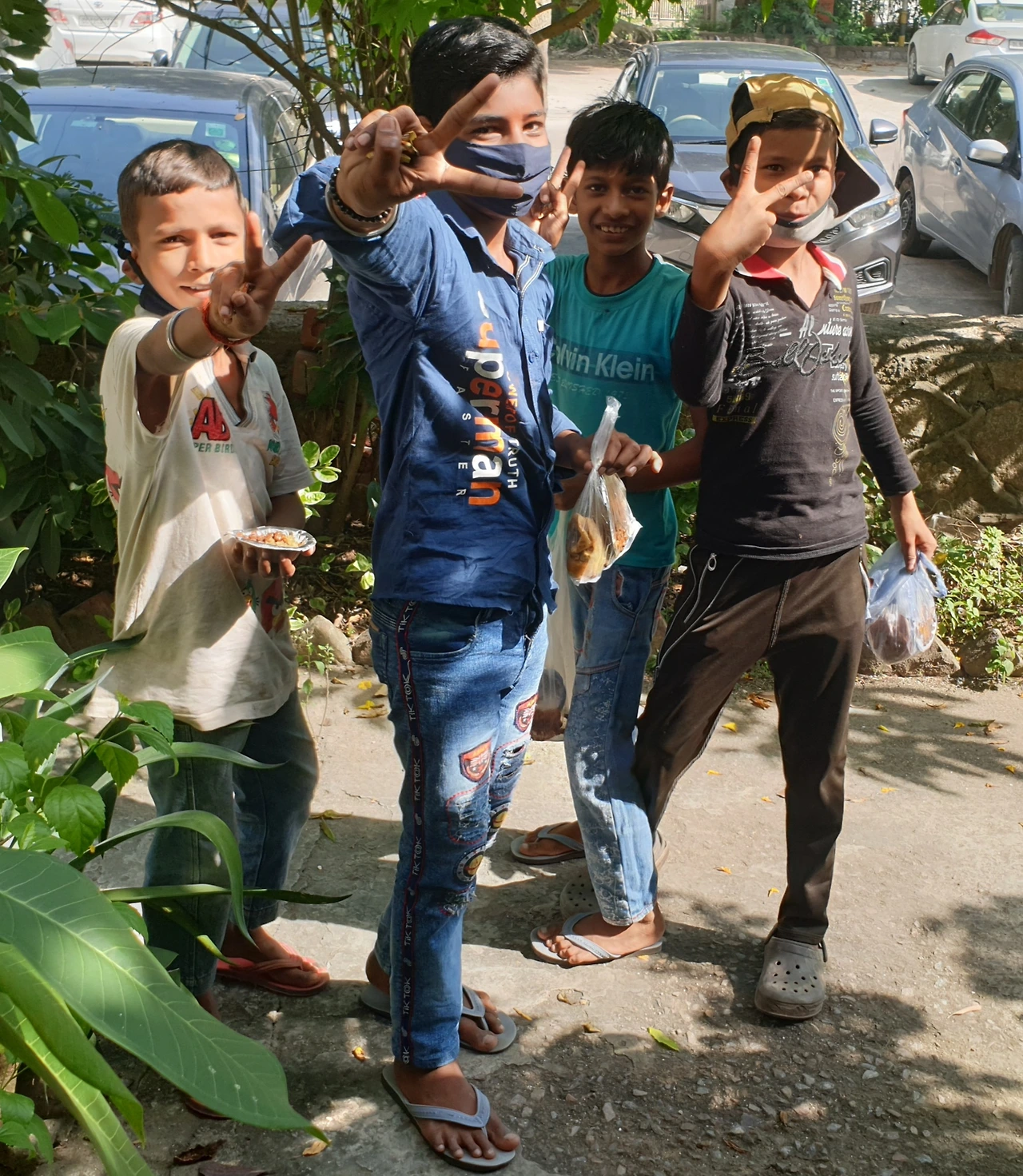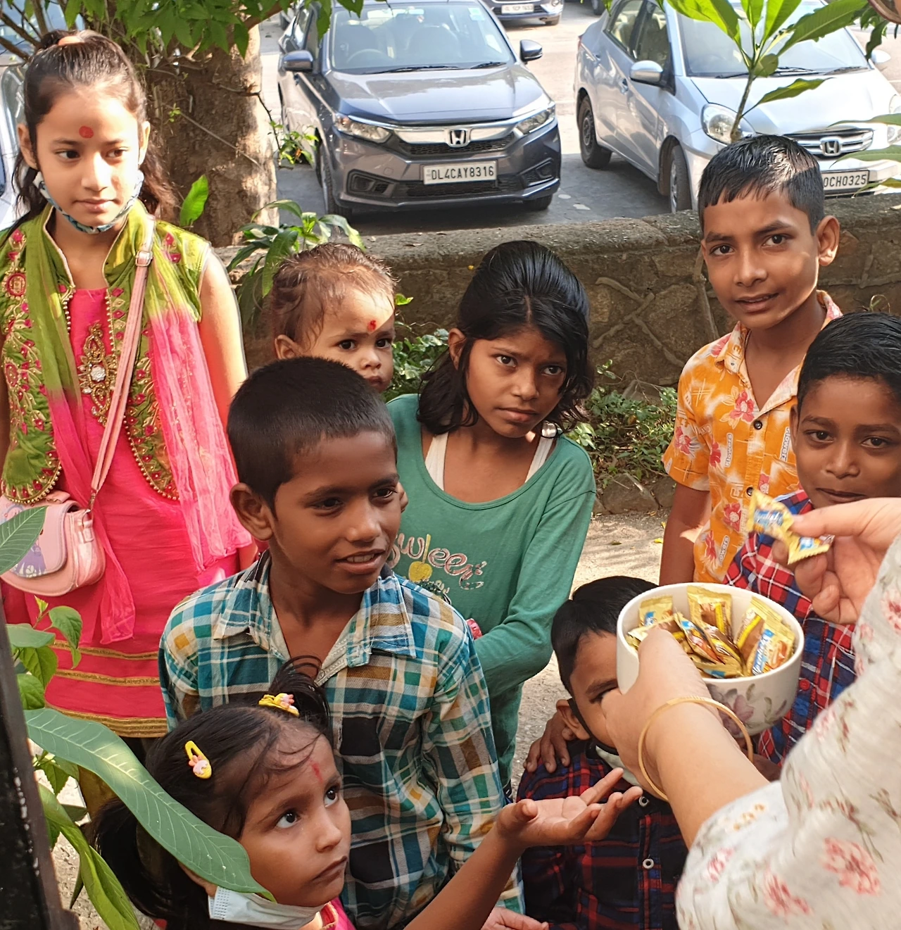 아침 운동을 다녀와서 인도식으로 라체 파라타와 과일 샐러드를 먹으려는데 아침부터 초인종이 울립니다. 뭔가?하고 나가보니 어린 아이들 7,8명이 커다란 눈망울을 굴리며 인사를 합니다. 마스크도 없이 꼬까 옷을 입었습니다.