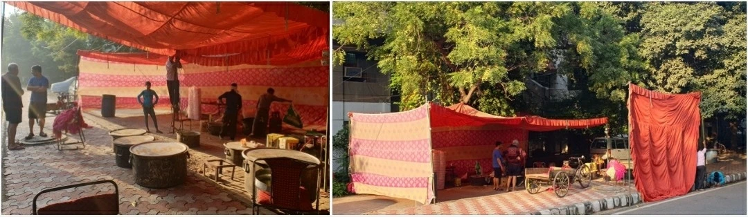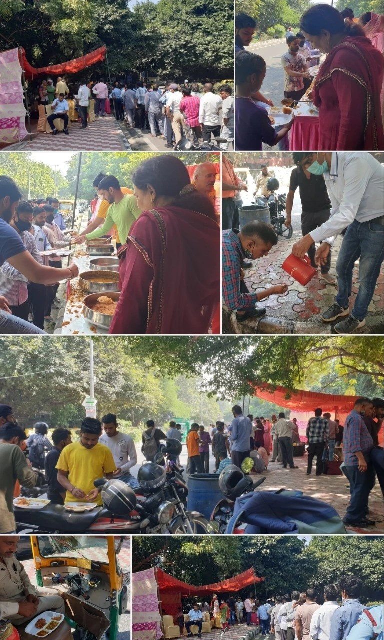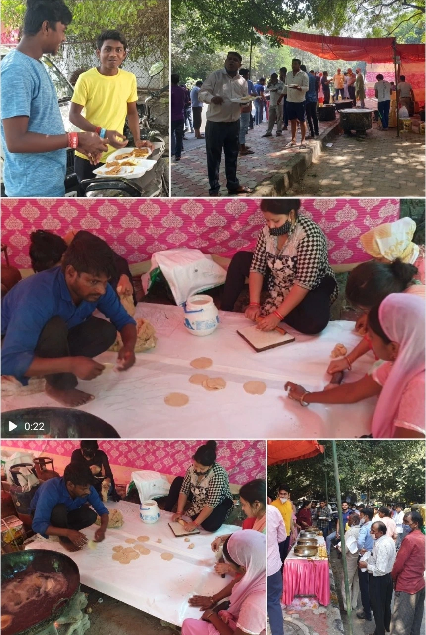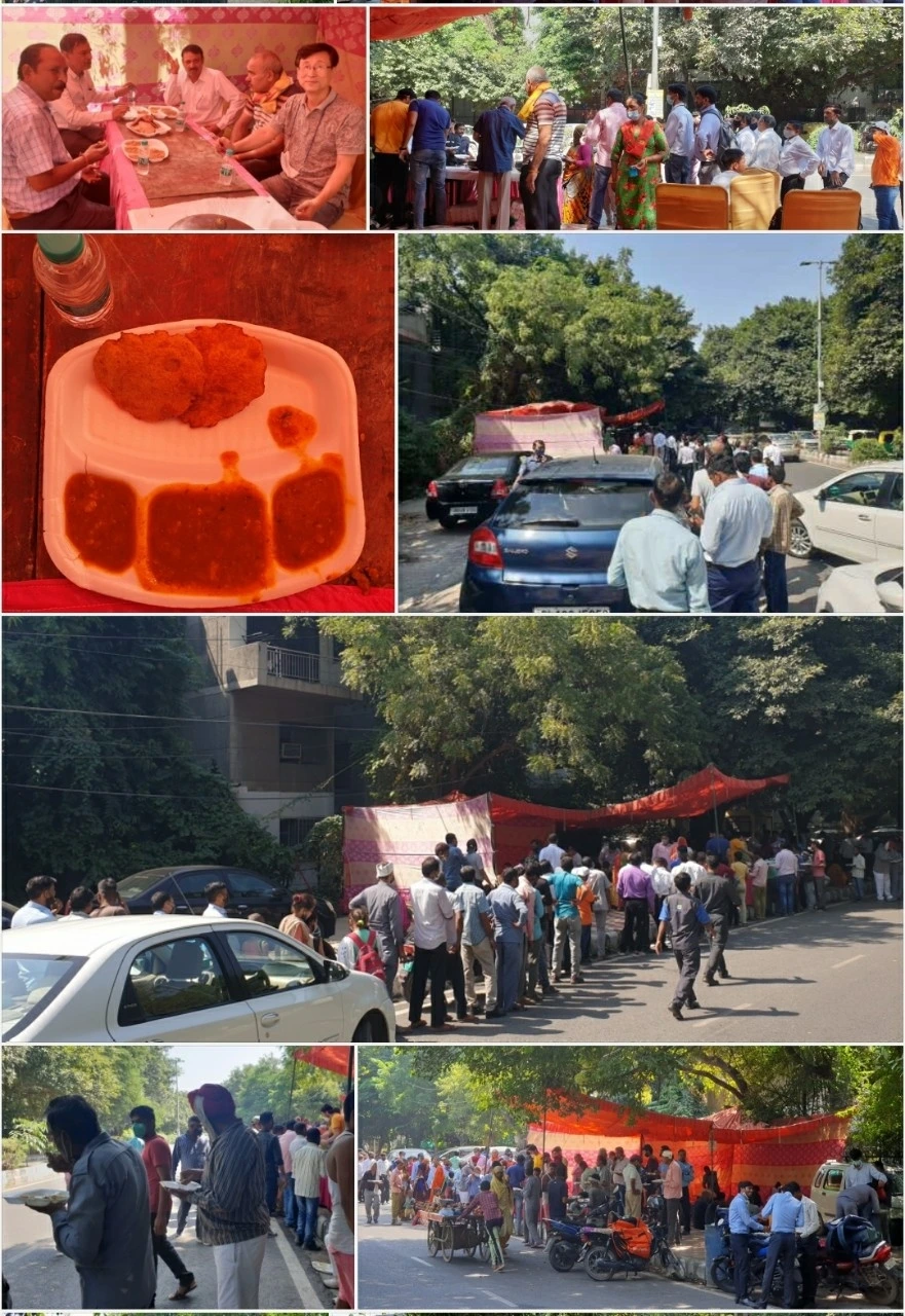 메뉴는 기름에 튀긴 푸리puri빵에 썹지(야채요리) 2가지, 그리고 프라사드sweet입니다. 더 달라고 하면 더 줍니다. 깔끔하고 위생적입니다. 지나가는 택시.릭샤기사들, 근처 직장인들, 근처 공사장 일꾼, 가정집 하인 등 모두들 한끼 잘 먹고 갑니다.