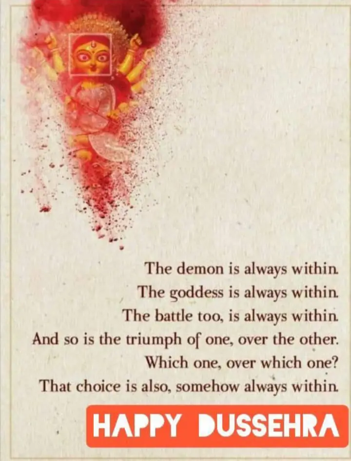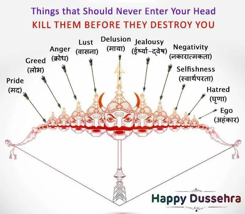 열흘 – "두세라"의 날로 칭한다. 두르가 여신이 악마를 죽이는 날 (자신의 에고를 없애는 상징적인 날) 우주는 모든 이를 위한 마음으로 충만하며 무조건적인 사랑과 믿음 신념으로 자신이 원하는 것들을 창조할 것이다.