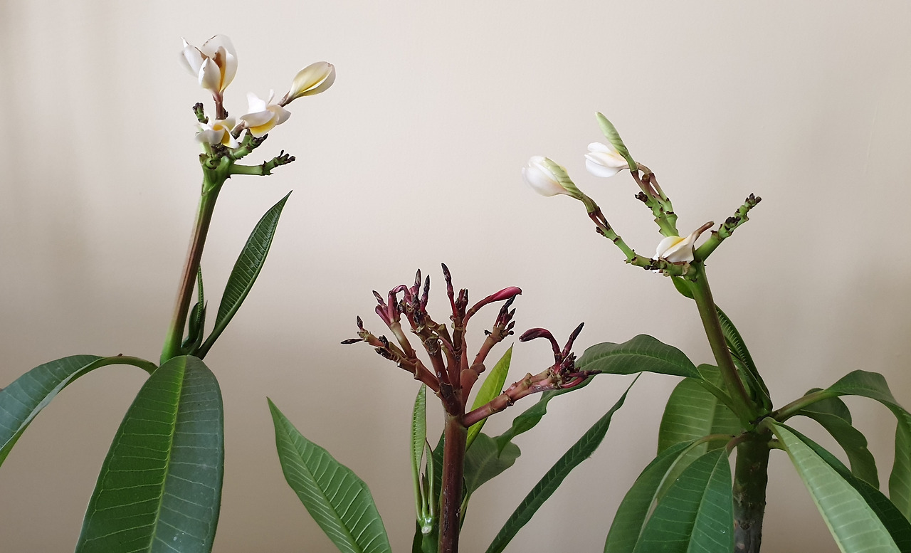 참파는 하와이의 꽃이라고 알고 있었는데 레이를 만들 때 쓰입니다. 향기롭고 꽃이 커서 여자들 머리 장식으로 쓰이기도 합니다. 아름다운 향기로 샤넬 5의 원료이기도 하답니다. ㅎ 건조에 강하여 인도의 혹독한 여름을 잘 견딥니다. 물 많이 주면 안 되겠지요?