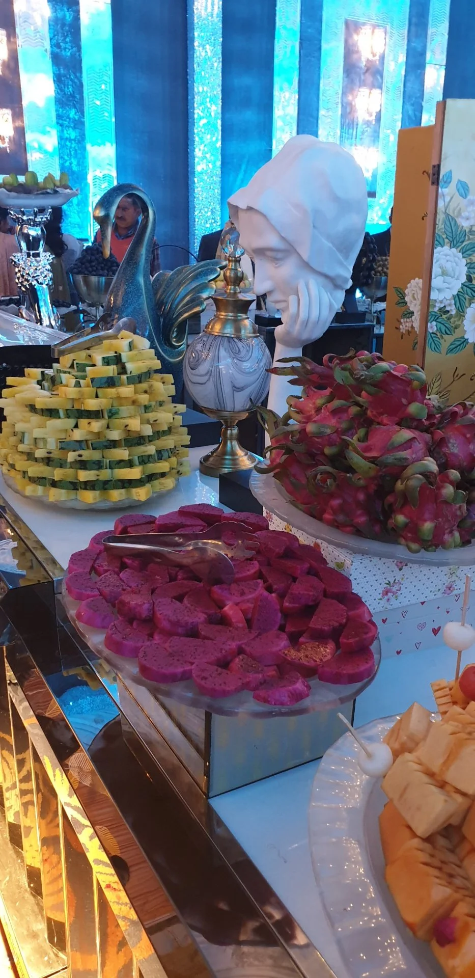 온갖 이국적인 요리와 과일등이 화려하게 준비되었어요.