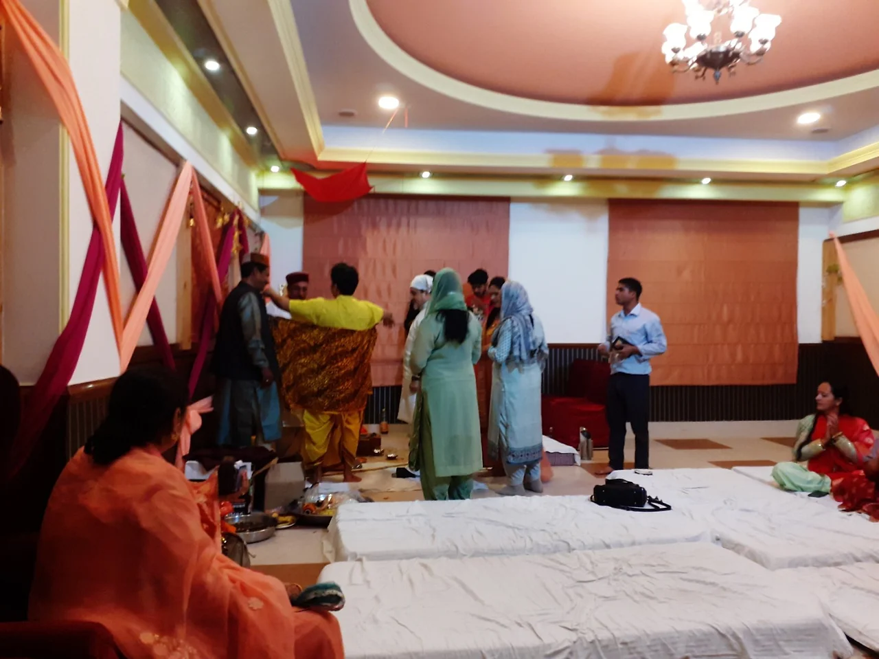 결혼식전 행사인데요... 신랑이 옷을 벗고 판디트와 무슨 행사를 하네요... 잘은 몰라도 밑에서부터 시작하라는 의미 같습니다. 옷을 벗고 탁발승처럼 해서 돌아다니고 업드려 판디트의 발아래에서 축복을 비는 그런 의식?이더라고요.