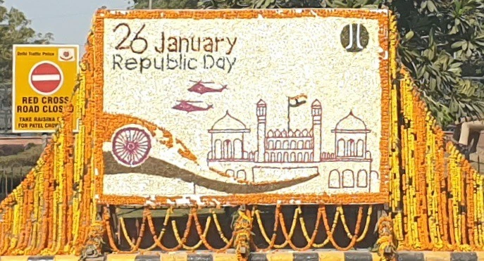 1월 26일 리퍼블릭데이 꽃장식이 대통령궁 가는 곳곳에 보여졌다.