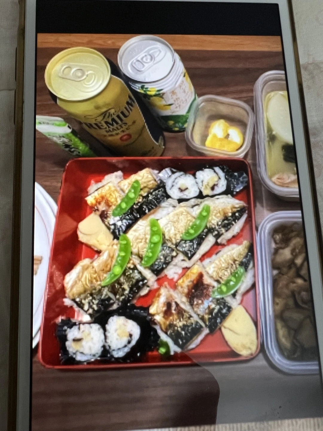 추가합니다. 위의 지인의 일본 친구가 오늘 사진을 보내와서 물어보니 사바스시는 랩이 말아있은 상태에서 썰어야지 모양이 흩트러지지 않는다고 합니다. ㅎ 또 한가지 배웠습니다. 누가 출산을 해서 음식해서 갇다준 모양입니다.