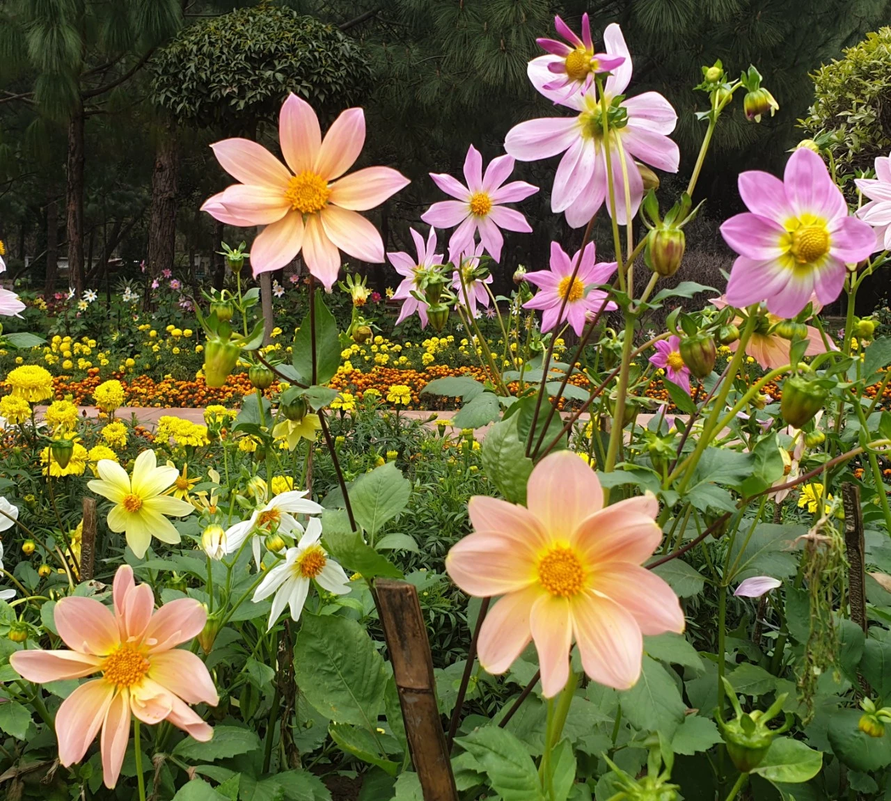 부다공원의 여러모습. 특히 한련은 먹을 수도 있다는 것을 알기에 꽃잎을 먹어보았더니 겨자맛이 난다. 매콤한 맛이 구미를 돗울 듯!
