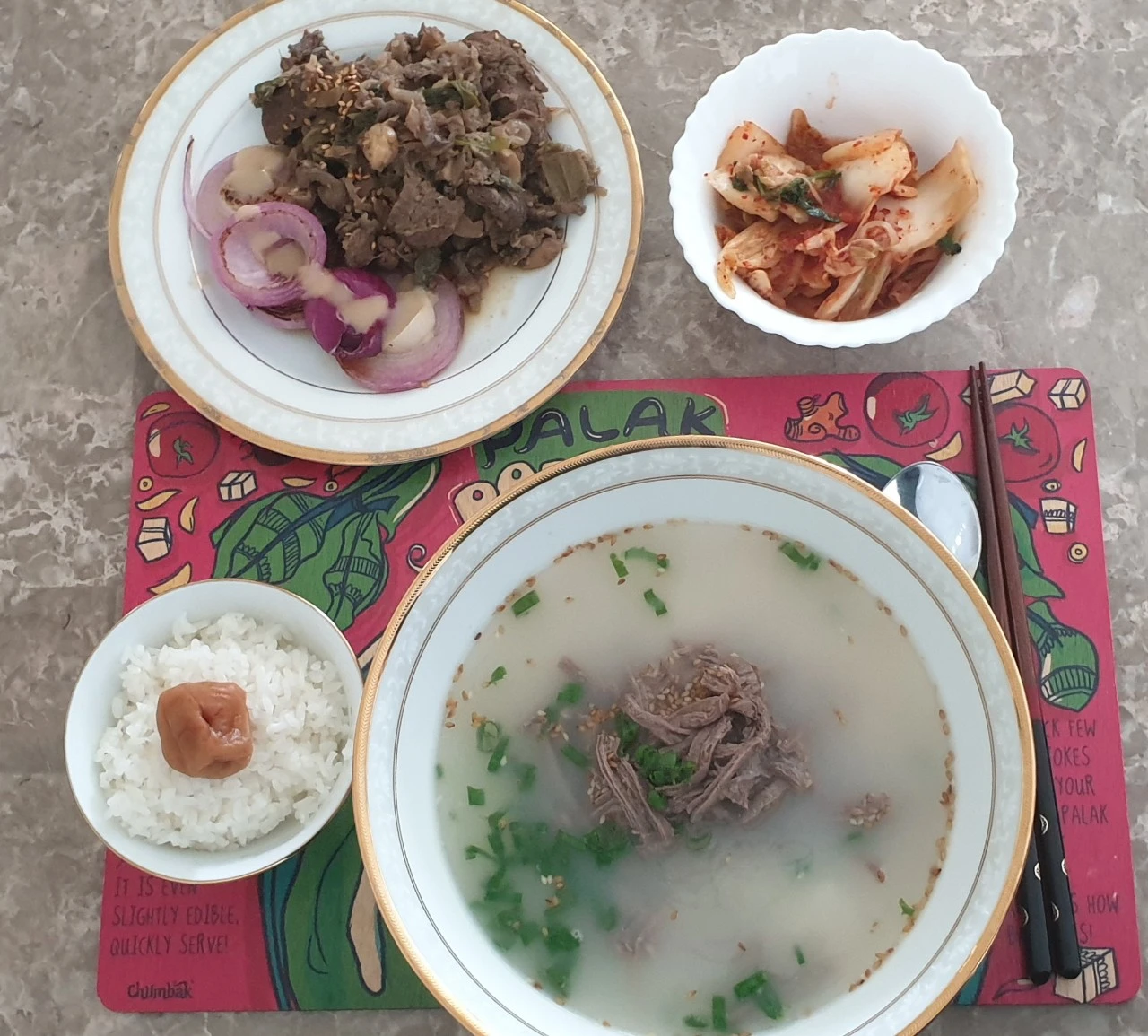 점심은 지인집에서 지인이 또 정성껏 준비한 설렁탕과 소고기 불고기. 우매보시를 한개씩 얹은 주물냄비밥이 참 맛있었습니다. 김치도 샐러드식으로 심심하니 만들어 놓았고... 참 비쥬얼도 이쁘고 맛있게 먹었네요. 후식은 홍시감 얼은 것을 적당히 녹혀서 내놓으니 그것 또한 별미입니다.