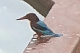 아침에 마주친 킹피셔, 오늘은 어떤 기쁜 소식이 찾아올지요? 제가 마침 분수대에서 물장구치고 물 마시는 킹피셔의 사진을 찍었습니다. 킹피셔와 닐가이는 저희 부부에게 행운의 상징입니다. 여러분들에게도 행운이 함께하기를 바라면서 싣습니다.