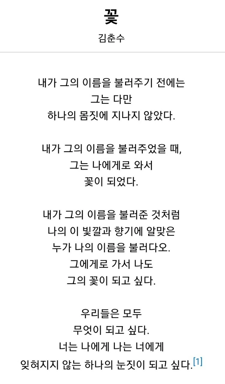 김 춘수시인은 꽃이름을 불러줌으로써 잊혀지지 않는 의미가 되어 나에게 다가온다고 했습니다.