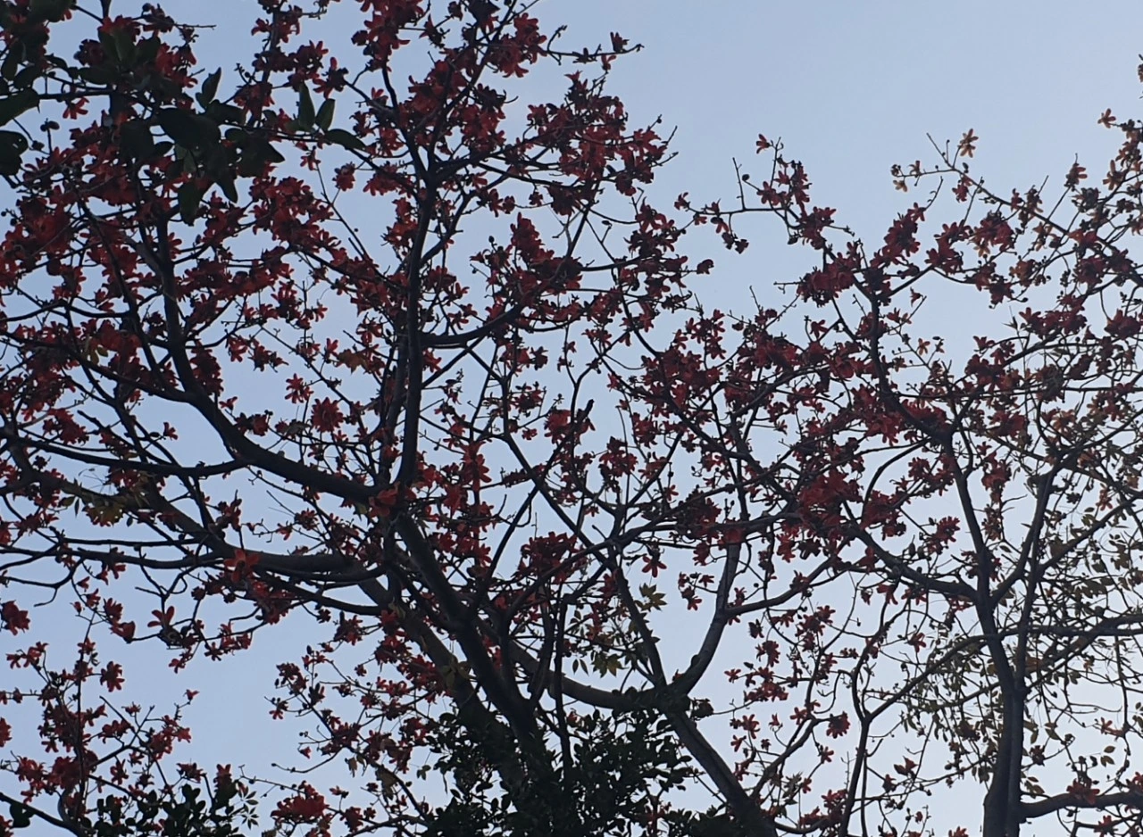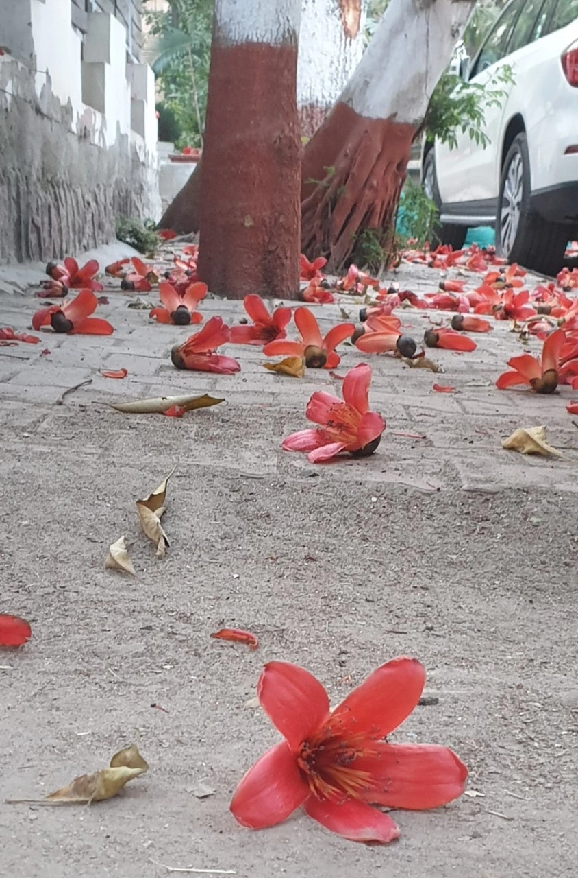 요즘 시내 도로변의 빨갛게 물든 큰 나무들은 죄다 코튼트리입니다. 코튼이라하면 미국남부 흑인들의 중노동이 연상되는 코튼 필드였는데 인도에서 큰 고목에 코튼이 주렁주렁 매달려 있답니다. 처음엔 무척 신기했어요!