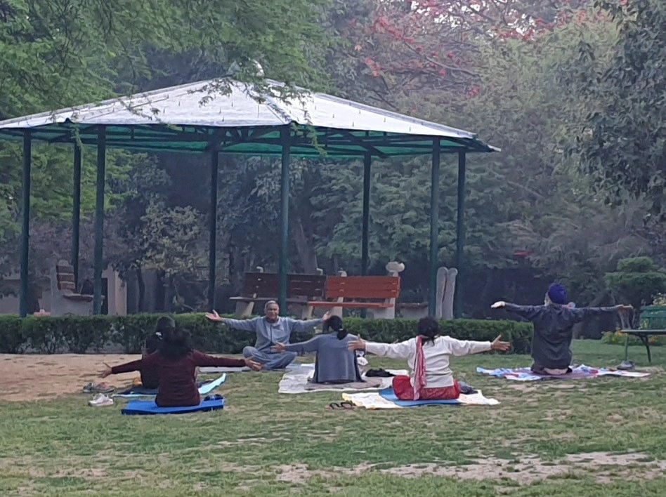 코로나로 중단되었던 새벽 요가교실. 동네 공원에서 삼삼오오 모여서 요가를 합니다. 인도인들은 대다수가 다 요가 고수들?이랍니다
