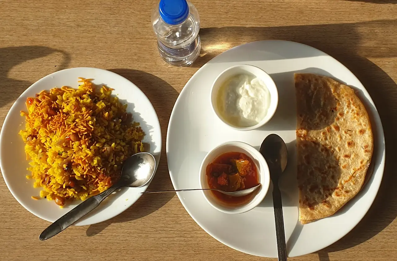 걷기 후 아침 식사, 포하 & 알루파라타와 요쿠르트 & 짜이 그리고 Talking,