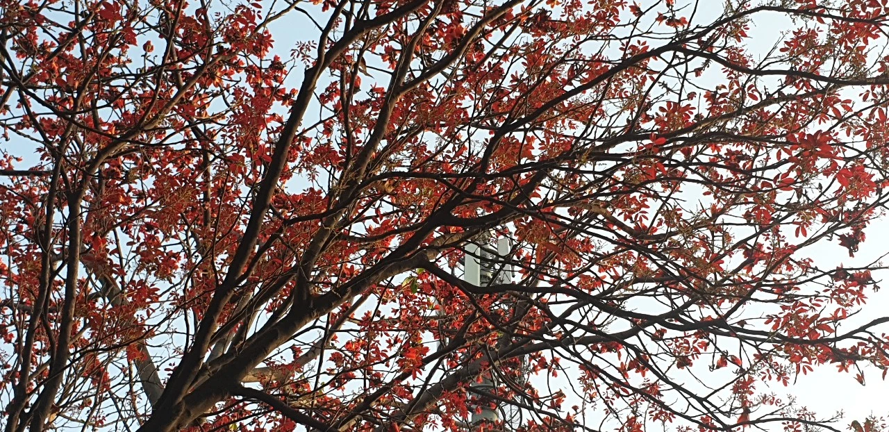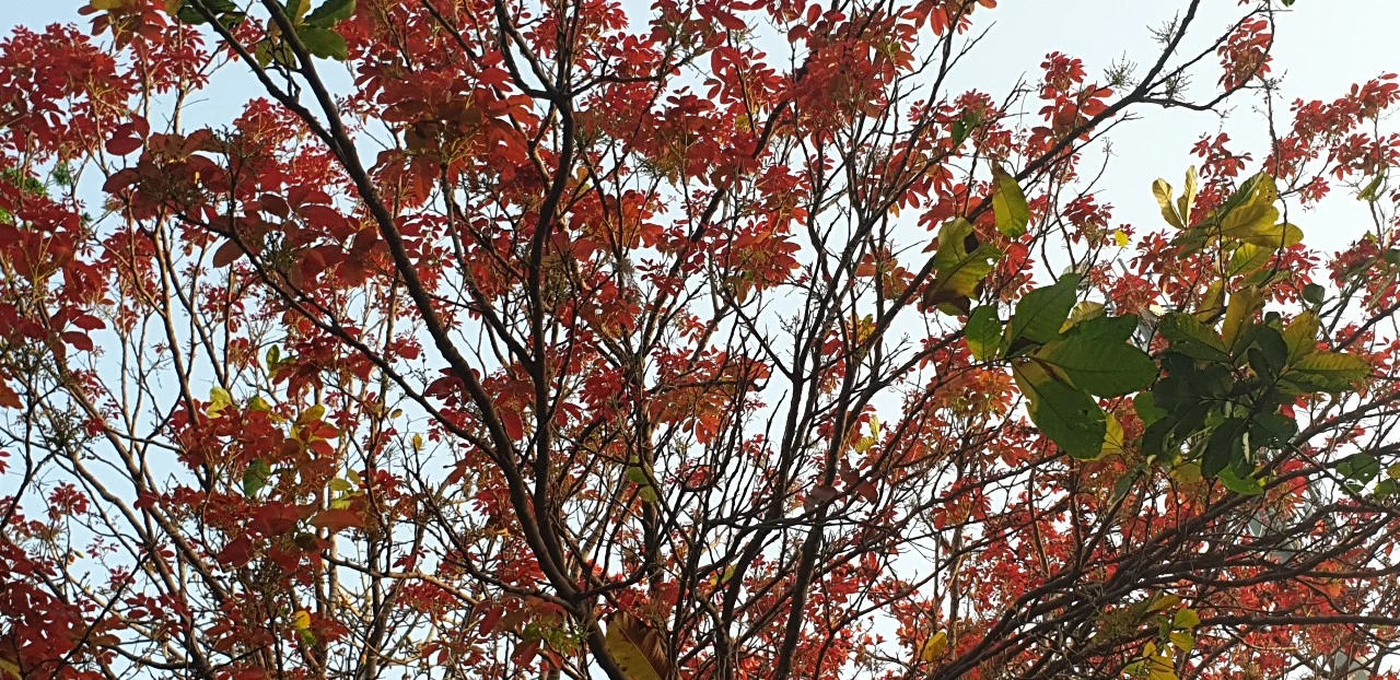 자연은 신비롭습니다. 나무들은 더운 4월의 열기를 피하려고 진작부터 잎사귀를 떨굽니다. 우리나라 가을 낙엽 분위기를 연출합니다. 그리고 연한 녹색이나 붉은색의 새싹들이 살며시 피어납니다.