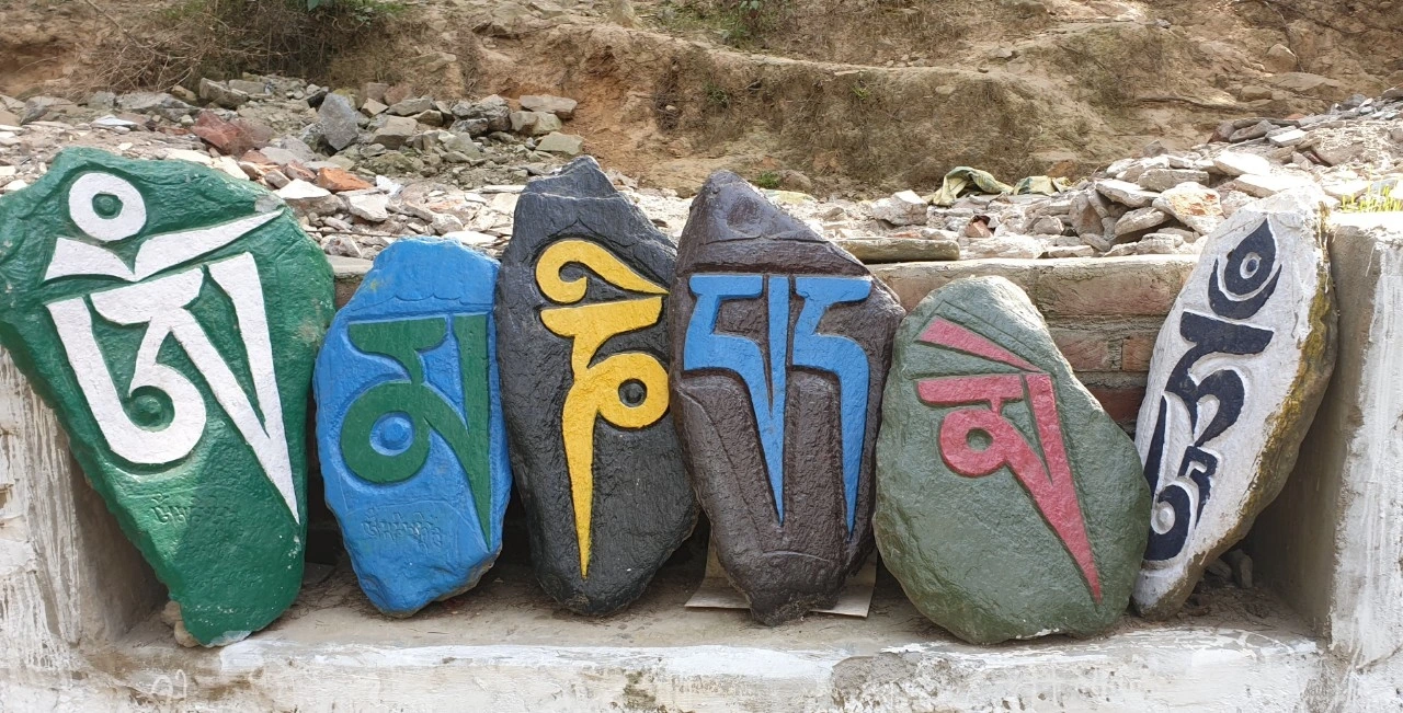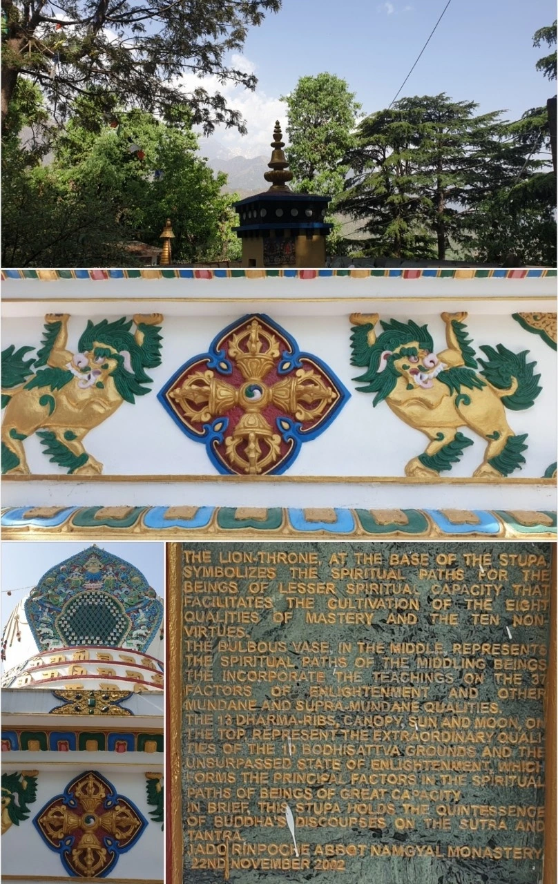 맥간에서 가장 중요한 부처님 기념비를 모셔 놓은 쫄라캉 (달라이 라마 사원) Tsuglakang으로 갔습니다. 망명 정부를 중심에 두고 시계 방향으로 산을 한바퀴 빙 돌도록 만들어진 샛길 Kora과 함께 합니다. 입구에는 Tsuglakang and Kora라는 팻말이 나무에 걸려있고 주변은 한적한 편입니다. 아담한 길에 적당하게 그늘져 있는 것이, 산책 코스로 아주 좋습니다. 중간 중간에 지나는 이들이 복을 기원하는 돌을 쌓아 놓았고 크고 작은 "옴 마니 빳메 흠 Om Mani Padme Hum"주문을 새긴 돌들이 자주 눈에 띕니다. 손으로 한번 돌리면 불경 한번 읽는 것과 같은 효과가 있다고 하는 마니차를 계속 돌리면서 걸어갔습니다. 도중에 원숭이 가족도 만나고 커다란 개들과 소도 만났습니다. 다들 평화로워보입니다.