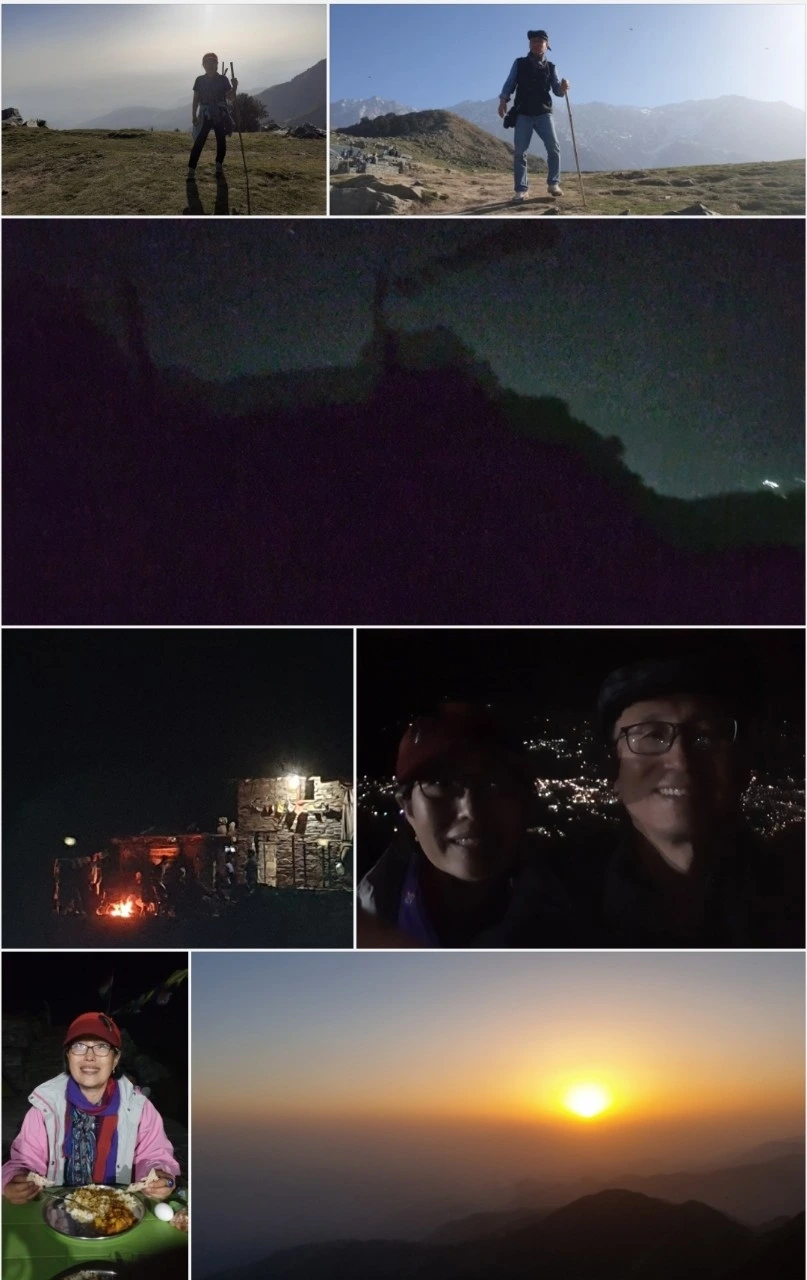 수다 떨다가 해지는 장관은 대강 감상했습니다. 어느 순간 해가 구름에 가려져서 안보이더라고요... 그래도 주황색의 어스름한 낭만은 맛보았으니 만족합니다. 발밑으로는 맥간과 다람콧, 저멀리 다람살라와 캉그라의 불빛들이 찬란하게 빛납니다.