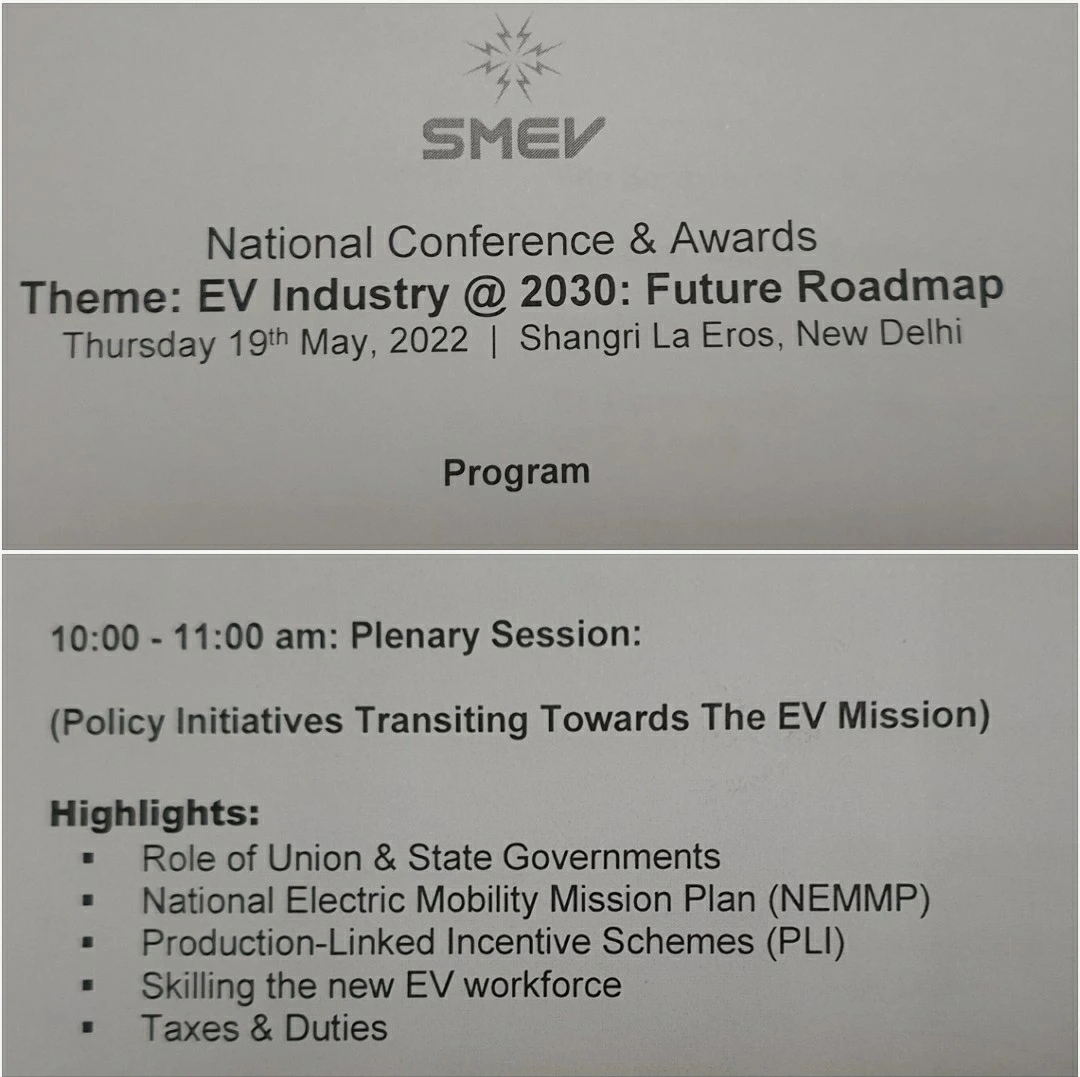 '전기차'가 주제인 행사였습니다. 인도정부가 야심차게 2030년을 타켓삼아 전방위로 전기차(이륜.삼륜.사륜차 망라해서) 전환을 향해서 전속력으로 달려가고 있습니다. 극심하던 코로나 2년간 이들의 활동은 멈추지 않았습니다.