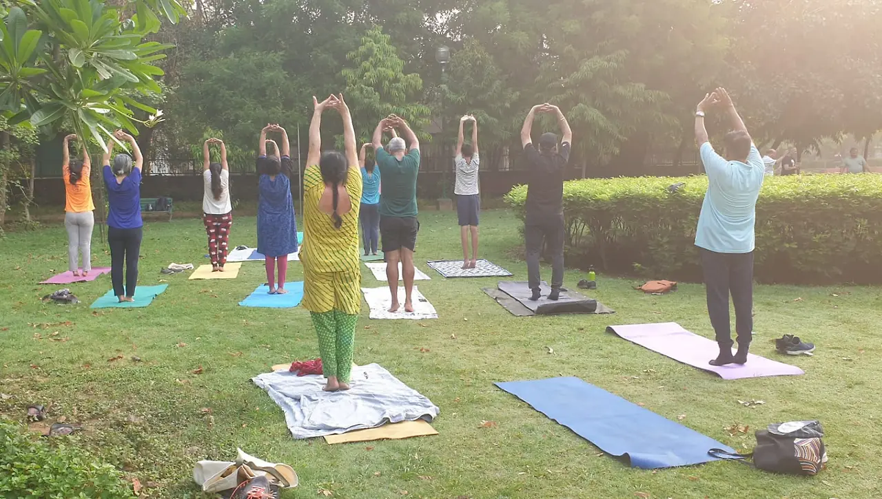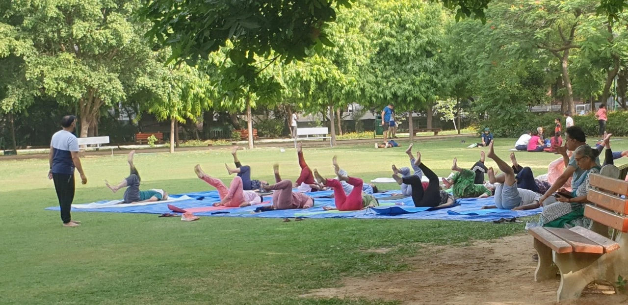 바산트 바티카 공원의 아침풍경. 최근에 요가매트를 들고 다니는 사람이 많아졌습니다.
