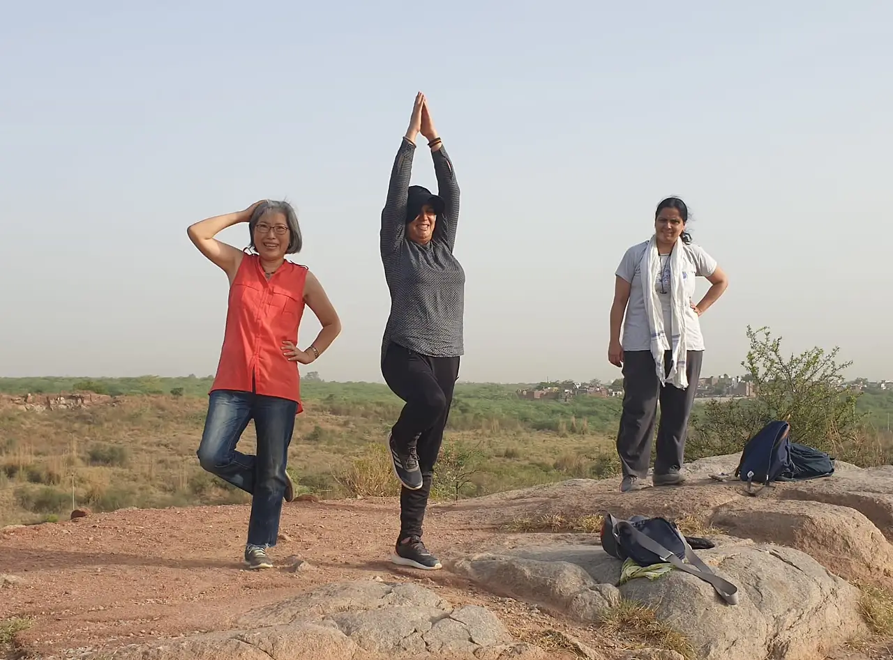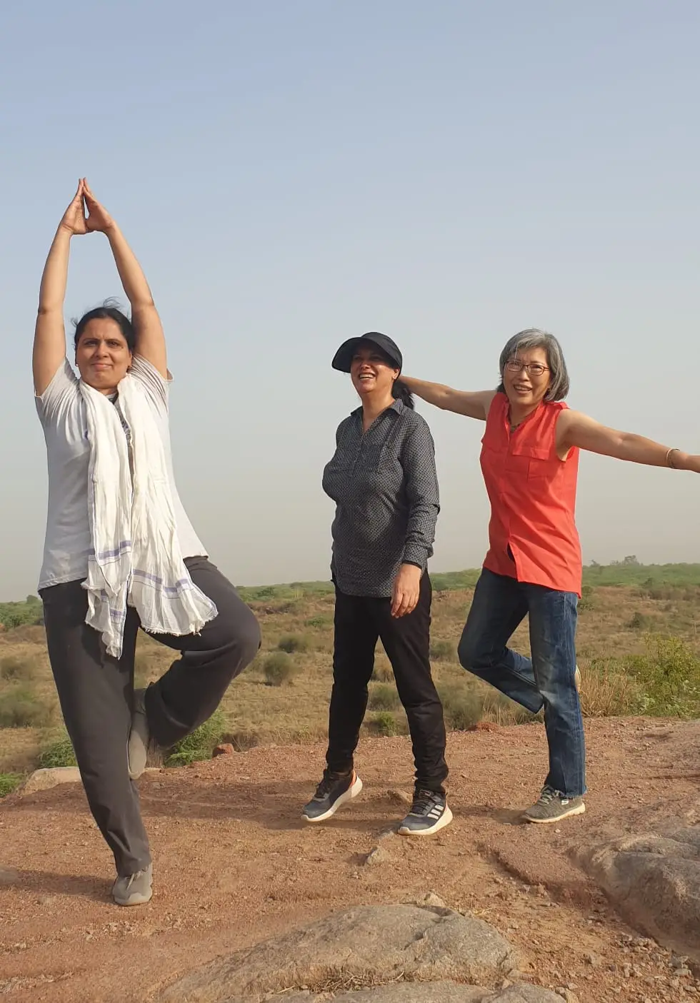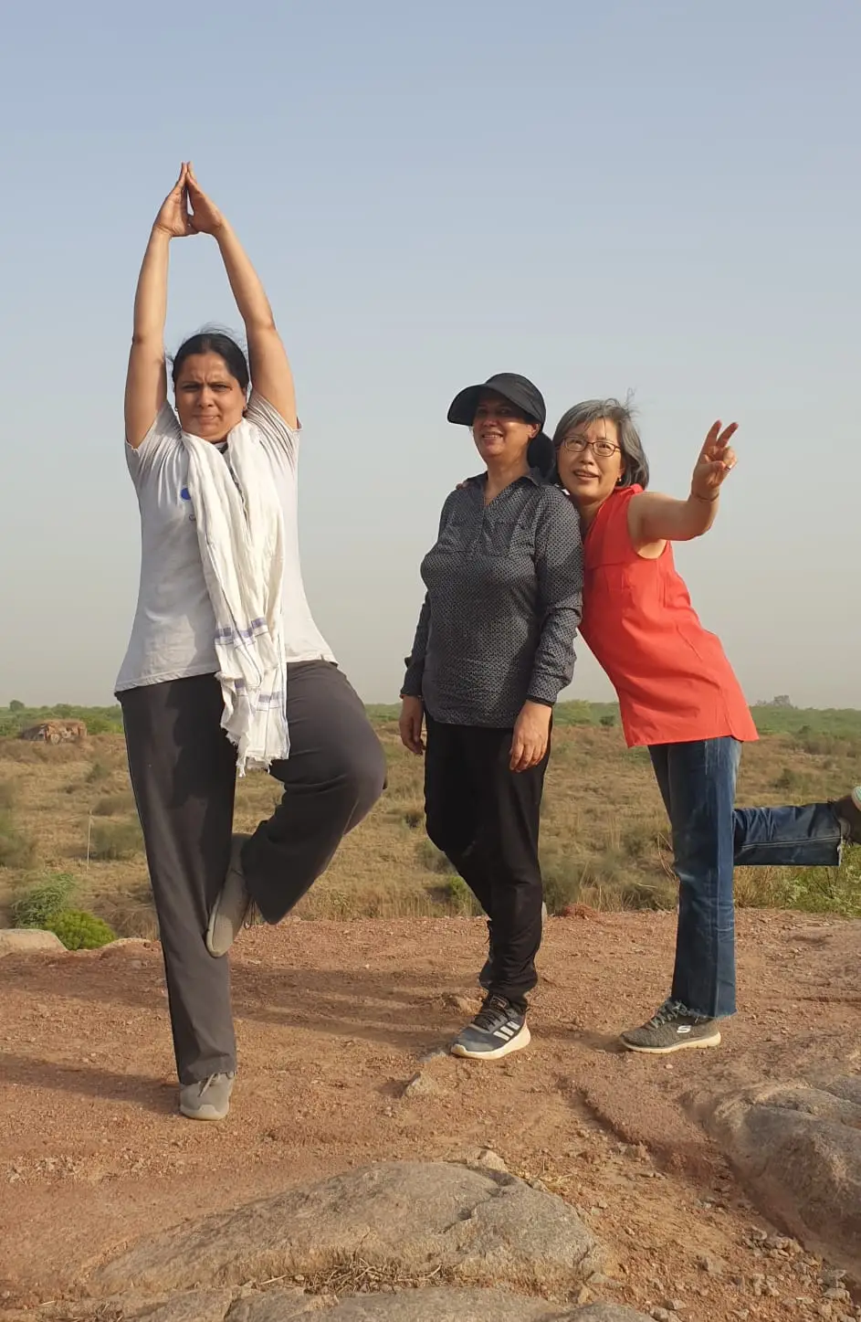 정상에서는 제법 바람도 불고 주변에 사람들이 없어서 이번에는 서로의 요가 포즈를 취하면서 놀았습니다. 라다는 퇴근후 얼른 저녁 준비해 놓고 한시간 가량 아메다바드의 요가 구루로부터 개인 교습을 매일 받는 답니다... 아들로부터 설렁설렁 살라는 얘기를 듣는다지만 부모가 맹렬히 살면 그것도 자식들에게는 좋은 교훈이 되지 않을까요?