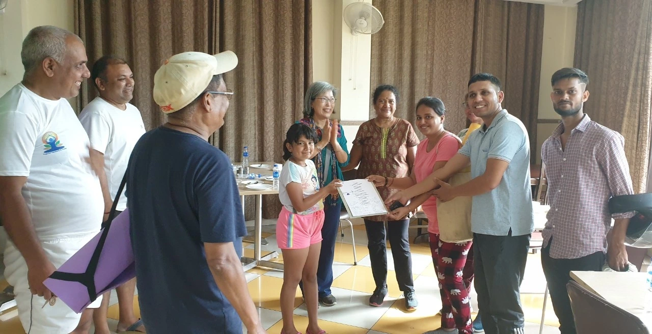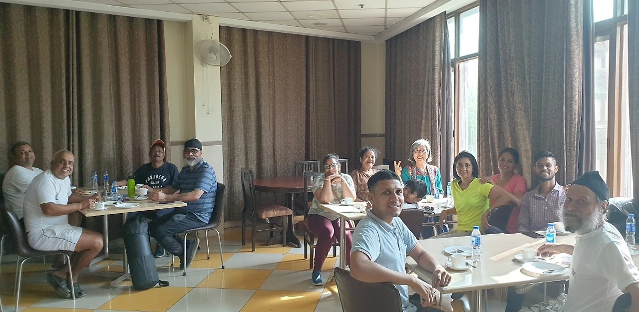 아침 요가를 마치고 뭄바이로 떠나는 한 멤버를 환송하러 번개 모임을 마디얀찰에서 가졌습니다.