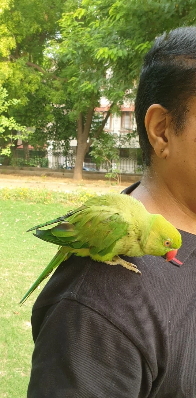 그것도 앵무새를 어깨에 걸치고 말이지요... 당연 앵무새가 화제의 중심이 되었습니다. 2년전 베란다에 떨어져서 사경을 헤매던 앵무새 새끼를 정성을 다해서 보살폈더니 이젠 한 가족이 되었다고 합니다. 다리가 어찌되었는지 병원에 데려가봤는데 날지 못한다고 하네요... 챙기려면 번거롭기도 하겠지만 이제는 어디를 가더라도 떼어놓을 수 없는 관계가 되었다고 합니다. 아침에 앵무새가 옷을 물고 일어나라고 해서 늦잠을 잘 수가 없답니다.ㅎ 그리고 매 식사 시간마다 테이블위에서 같이 식사하는데 인도인들이 먹는 모든 음식을 다 먹는답니다. 집에서는 아빠!라고도 한다는데 신통방통한 앵무새지요?