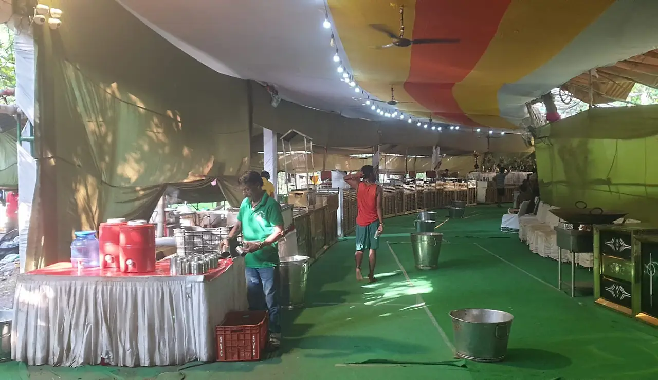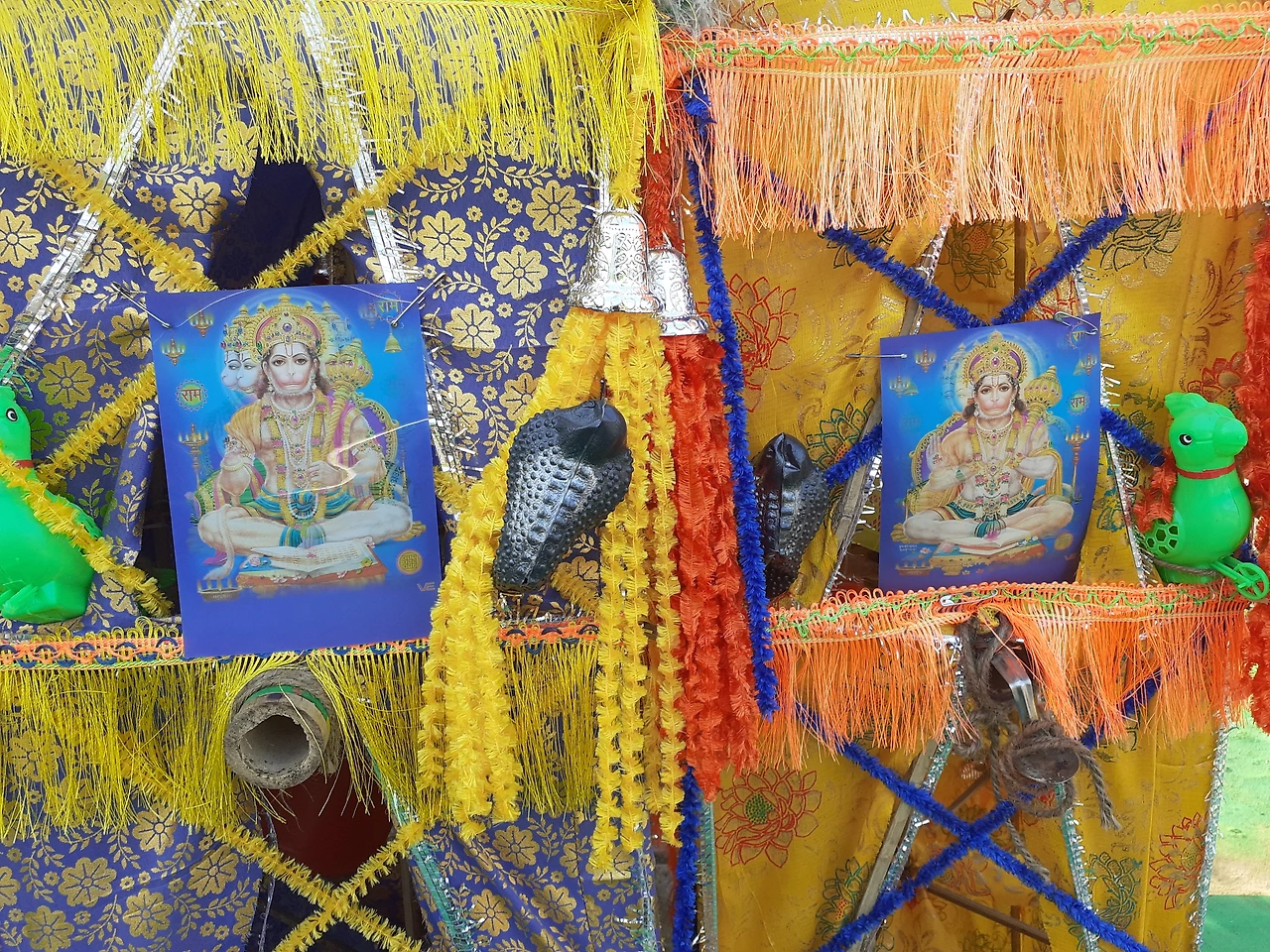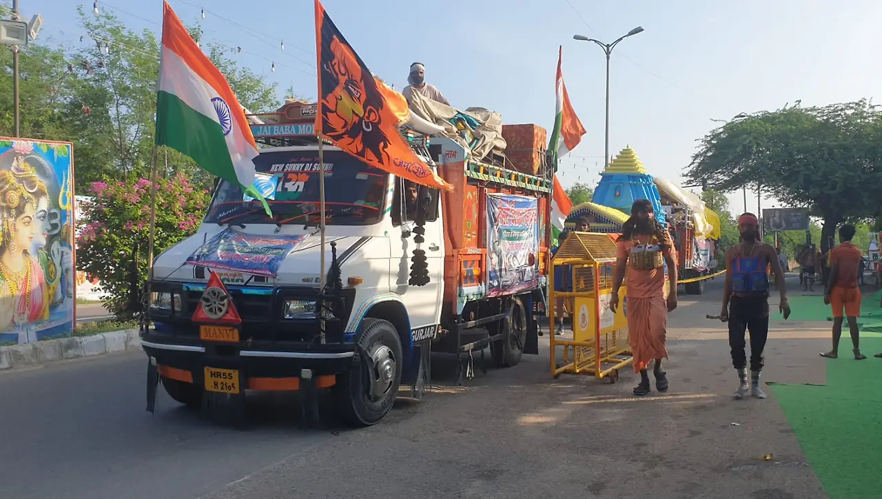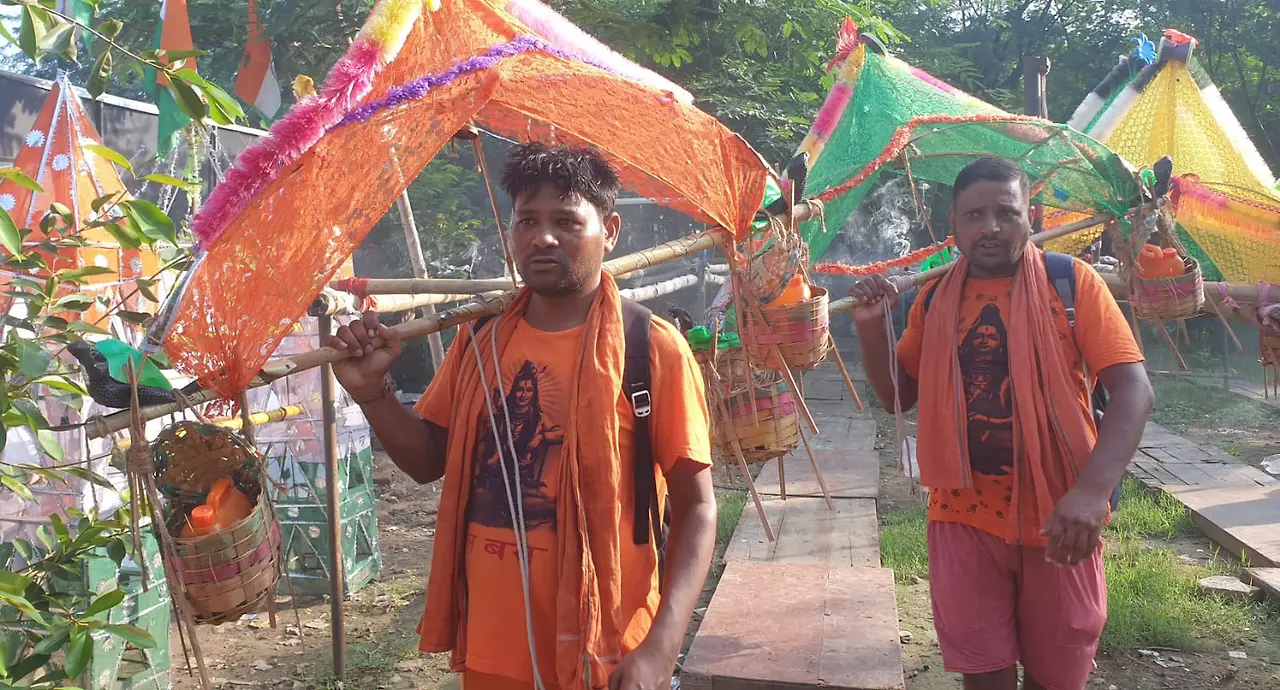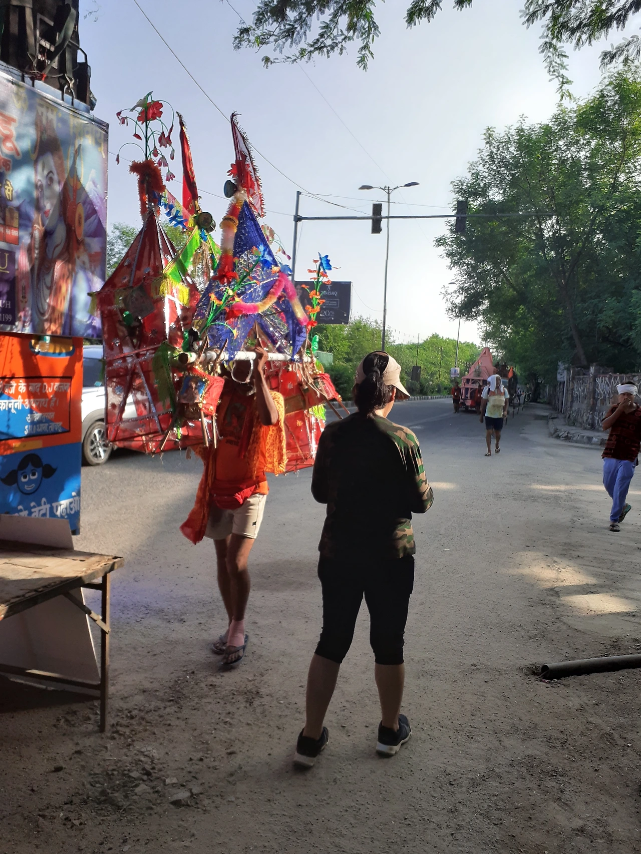 이즈음이 시바신의 달입니다. 또한 순례자들을 깐와리야라 부릅니다. 오렌지색 옷을 입은 사람들이 하리드와르에서 성수인 갠지스 강물을 길어다 고향으로 돌아가는 데 도중에 쉼터를 제공하여 쉬거나 식사를 할 수 있게끔 합니다. 엄청난 규모입니다.