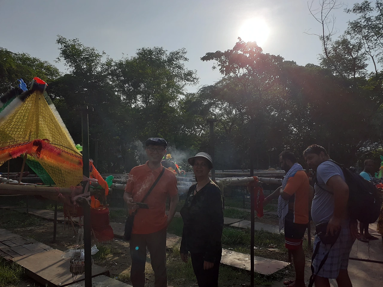 남편이 깐와리야의 행진을 기록에 남기자 해서 부다 자얀티 공원까지 온 것입니다. 내가 서울에 있을 때, 남편은 공원 근처에 깐와리야들이 진을 치고 있다는 것을 알게 되었습니다. 일요일에 가보니 대단한 장관이었습니다!