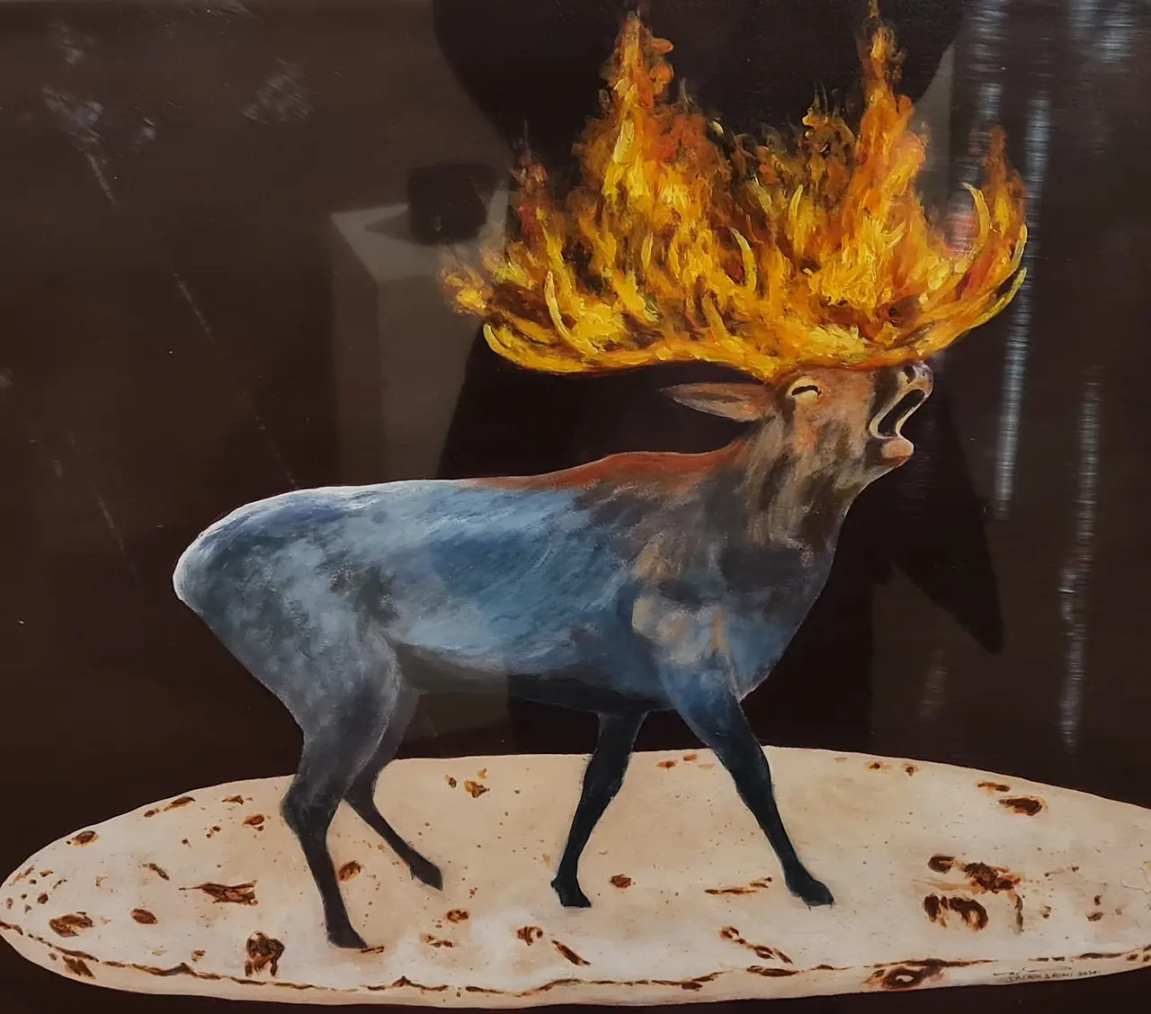 오른쪽 소의 생동감 넘치는 모습을 잘 표현해서 인상적이었다. 파키스탄 국기색깔의 옷을 입은 그분과 다과를 앞에 두고 대화를 나누었다. 소장가치는 있을 것 같은 작품이나 투우를 주제