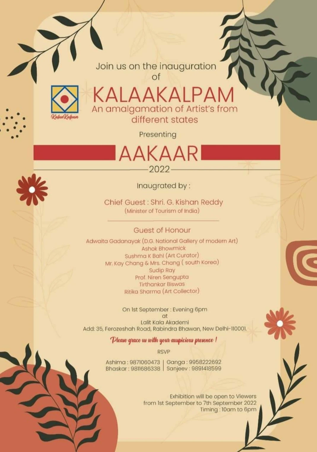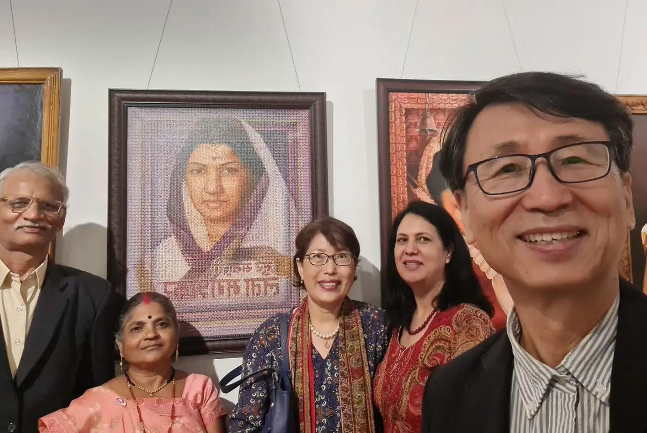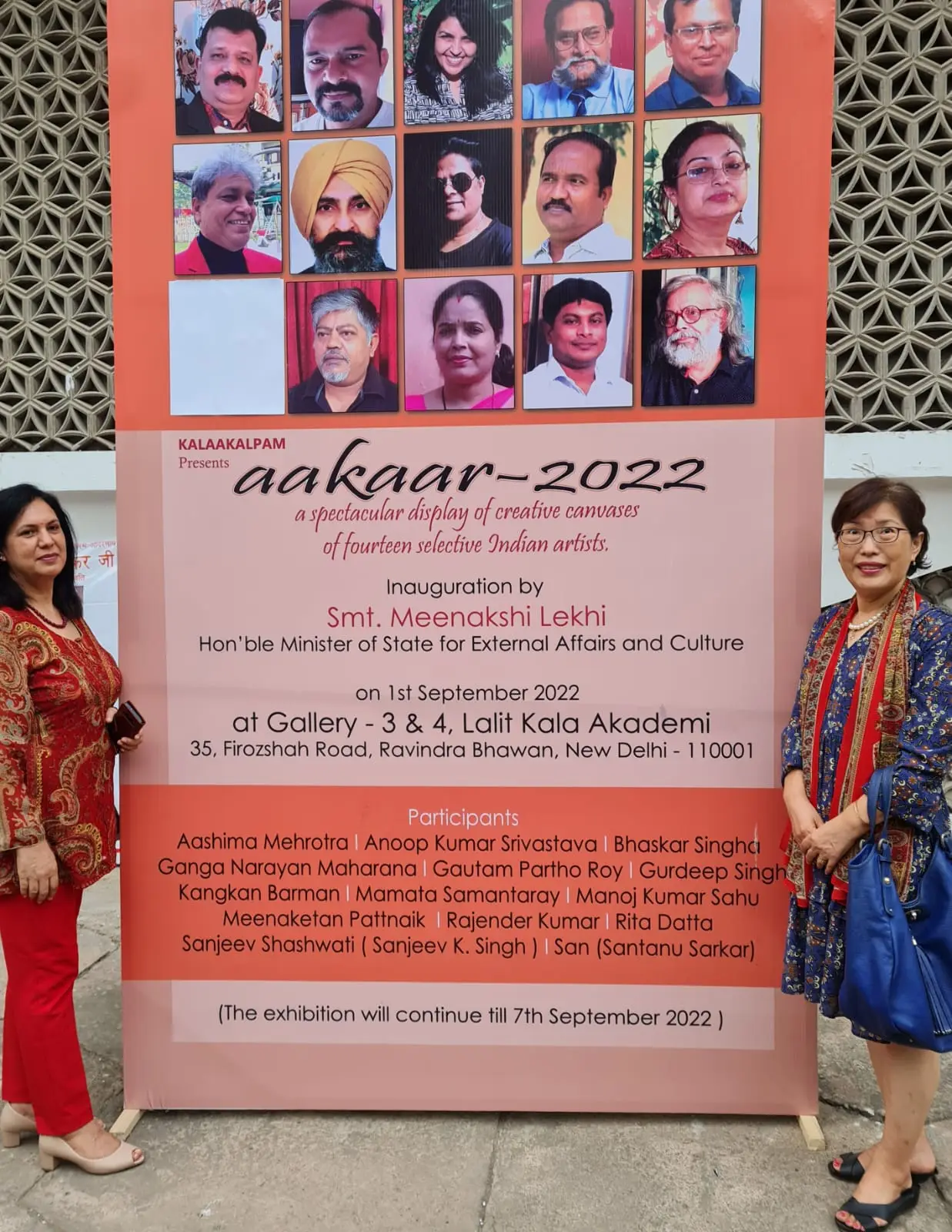 바스카 싱하 화가와의 인연으로 14명 화가들이 공동참여한 전시회 첫날 오픈식에 초대받았다. 우리부부가 영광스럽게도 guests of honor 중에 포함되었다. 당초엔 관광부 장관이 참석예정이었으나 델리 주정부 문화부장관이 대신 참석했다.