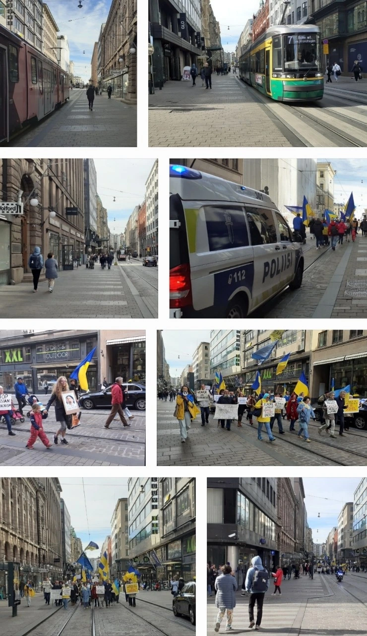3. 우크라이나 전쟁 반대 시위, 시위대 앞뒤로 경찰의 호송을 받고 평화롭게 전쟁 반대시위를 한다. 러시아와 국경을 맞댄 핀란드는 남의 이야기가 절대 아니다.