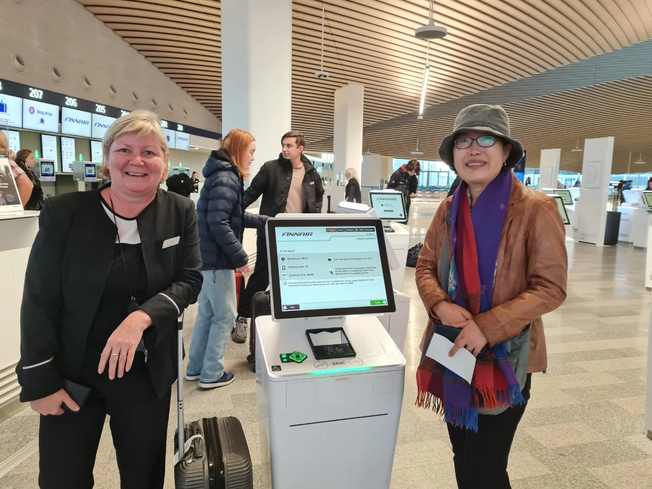 공항에서는 연세가 있으신 분이 셀프 첵업을 도와주시겠다고 나서신다. 젊은 핀에어 직원들은 저리가라 말로만 하는데 카운터에서 만난 그분은 직접 카운터에서 나오셔서 쉽다고 하시면서 단계별로 알려주셨다. 고마워서 사진으로 남긴다.