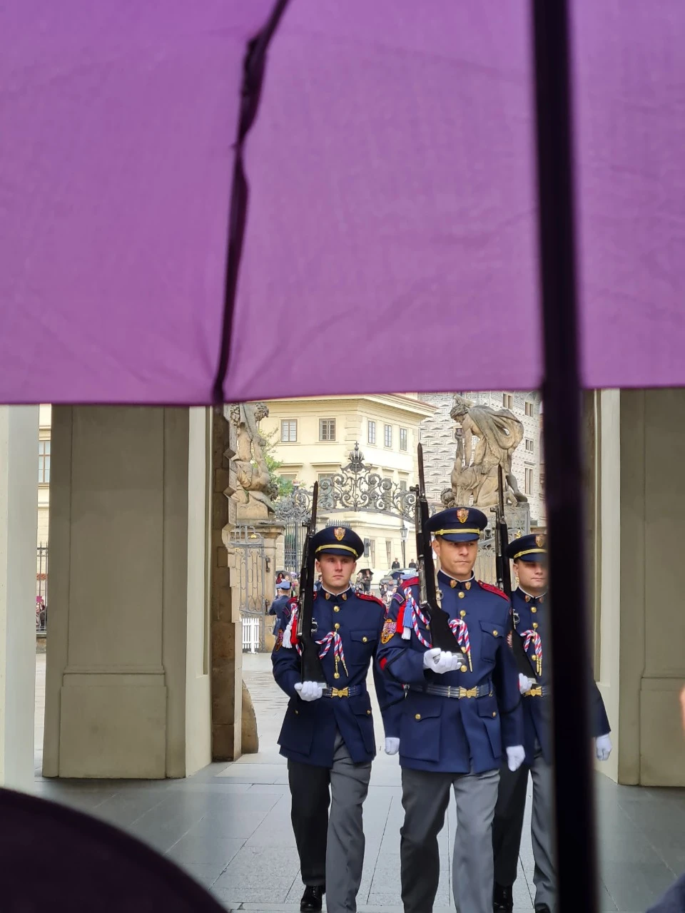 비가 흩뿌리는 와중에 근위병 교대식을 보았다