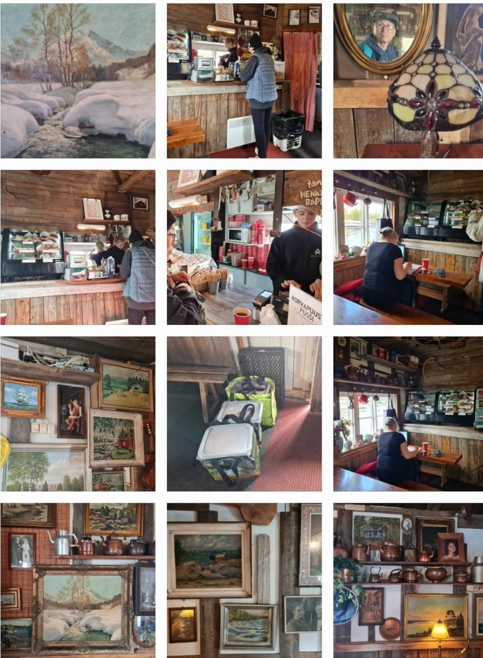 사람들 발길을 따라 걷다가 인근 카페로 향했습니다. 알고보니 여러 책자에 소개되어있는 명소더군요. 저는 커피를 시켰는데 찬우유만 주어서 별로 였습니다. 그런데 옆 식탁을 보니, 장작불에 소세지를 직접 구워서는 빵에 끼워서 먹습니다. 데이트 나온 이들이 소세지 꼬치를 이리저리 돌려서 맛나게 구워서 먹는 것이 참 좋아보입니다.