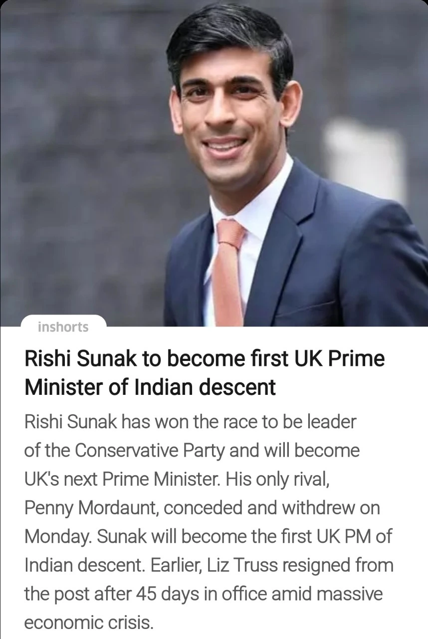 첫째, 당면한 경제난국을 해결할 이는 리쉬수낙 밖에 없다. 오죽하면 콧대높은 영국인들이 인도계를 수상에 임명할까? 대안이 없기 때문이다.