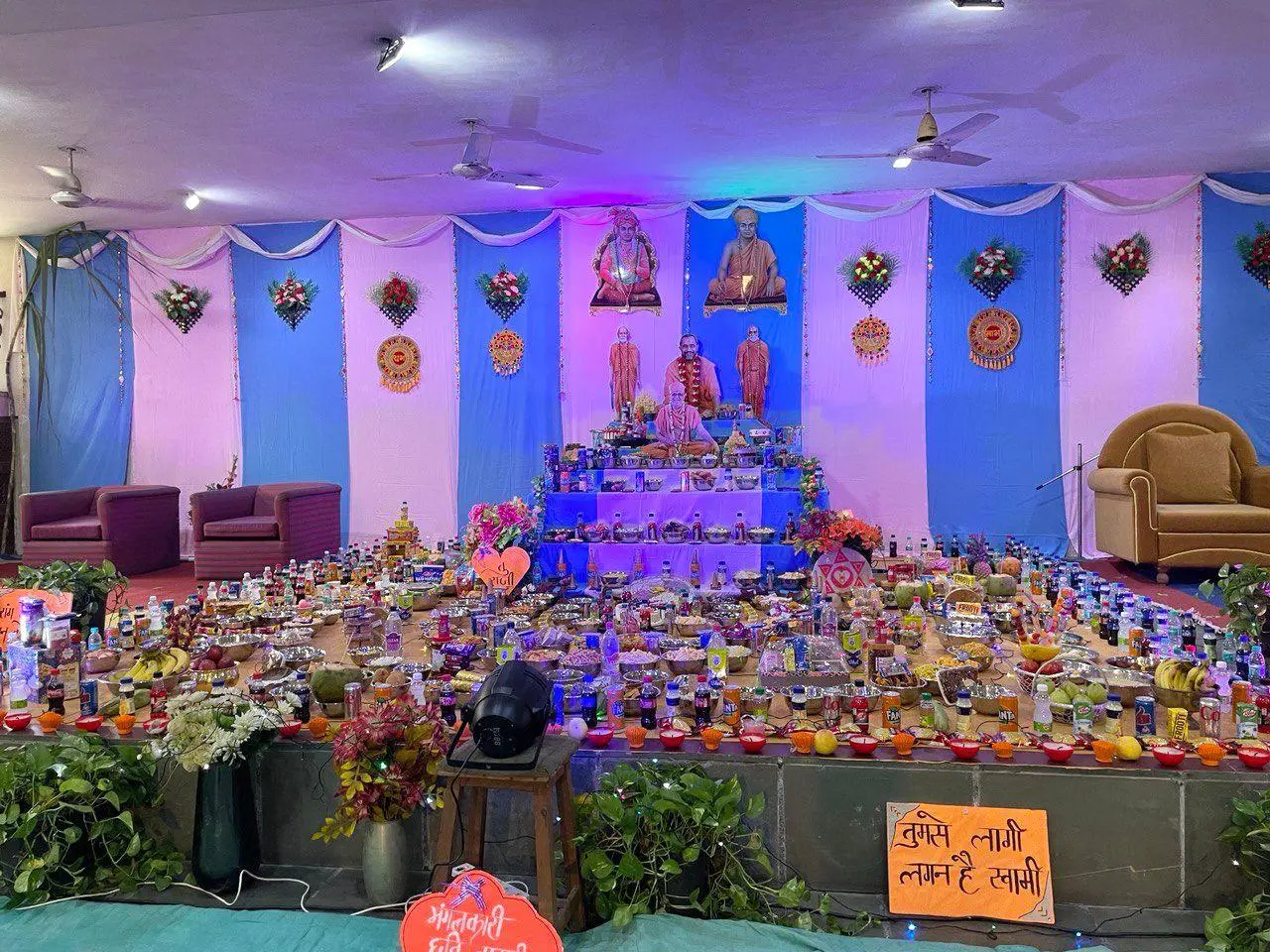 코로나로 돌아가신 스와미(Swami)를 기리는 뜻깊은 종교행사에 2~3백여명이 넘는 이들이 가족과 함께 또는 친구들과 찾아왔습니다. 로미가 단상에 바치는 선물 한꾸러미를 준비해왔기에 그것을 갖다 놓는데 수많은 먹거리가 눈을 휘둥그레하게 만듭니다. 인도도 제사때는 먹거리를 한가득 차리는 모양입니다.