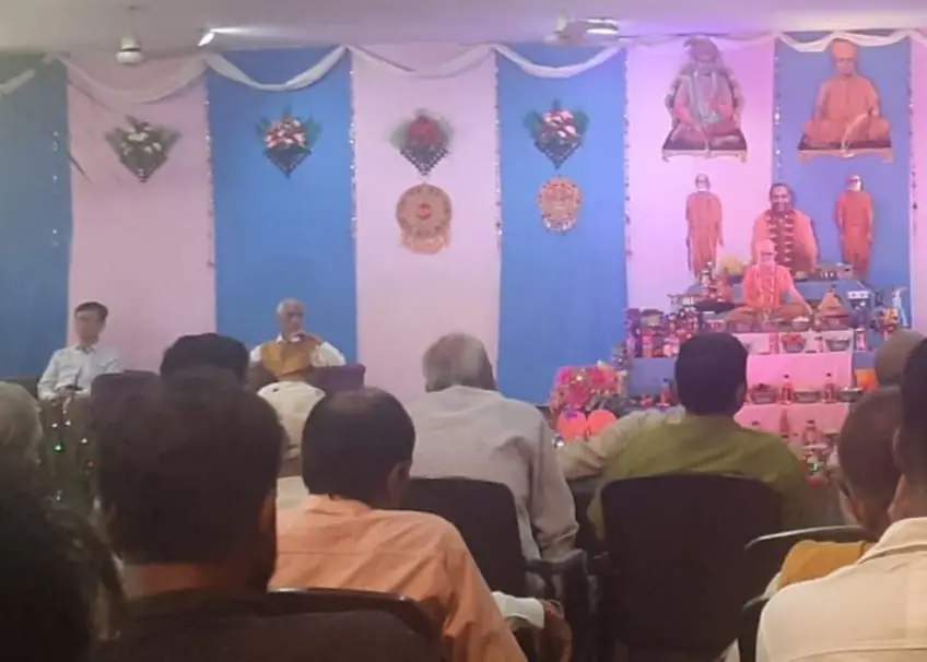 마무리 자리에서, 스와미님께서 이를 잊지 않으시고 이 말씀을 힌디어로 대중들에게 전달하면서 함께 기도를 올렸습니다. 나중에 그의 연설을 영어로 전해 들었습니다.