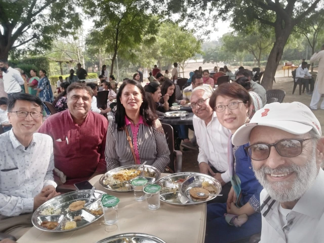 델리지역 최고 스와미님과 봉사자들과 함께 한 남편, 스와미님은 돈과 여자를 가까이 할 수 없어서 수행자가 돈을 가지고 다니며 여자들은 함께 사진도 찍을 수 없답니다. 멀리서 경배!