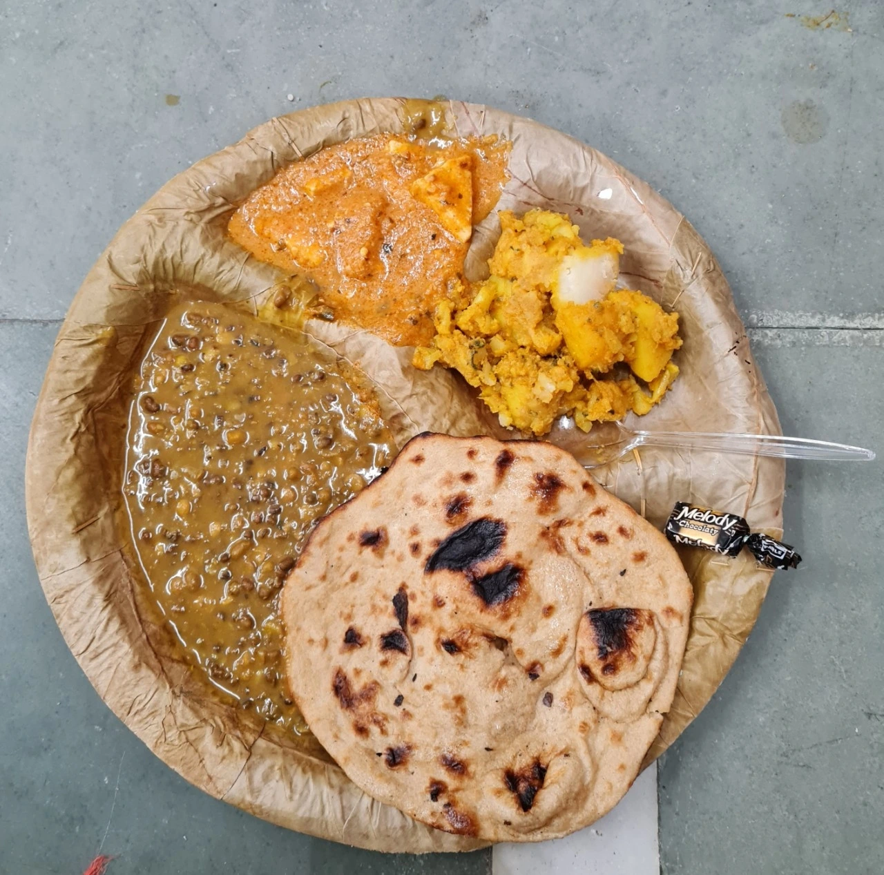따끈한 프라사드를 나눠주기에 손으로 받아 먹고는 랑가르로 향했습니다. 수많은 사람들이 일렬로 쭉 앉아서 식사를 하고 있었습니다. 우리는 안쪽으로 들어가 할머니를 의자에 앉히고 저희들은 바닥에 앉아서 기다리니 봉사자들이 다니면서 그릇과 음식들을 나누어줍니다. 나뭇잎으로 만든 접시가 특이해서 한참 보았습니다. 파니르요리, 컬리플라워와 야채범벅, 달스프, 짜파티와 밥, 키르(스위트 라이스) 그리고 사탕 한개씩이 기본으로 주어졌고 수시로 봉사자들이 음식이 든 바께스를 들고 다니면서 더 원하는 사람들에게 부어줍니다.