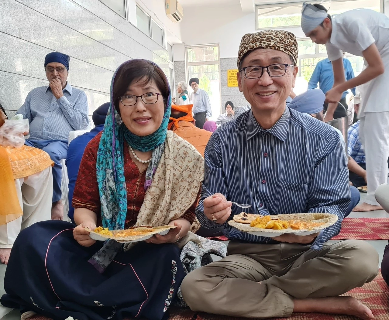 오늘 11시전에 바산트비하르의 구루드와라에 도착했습니다. 할머니께서는 저희부부에게 옛날 지폐 2루피 새것을 쥐어주시고 이것을 통에 넣으라고 하셨습니다. 무슨 뜻인가 했더니 할머니가 앞의 연단으로 가셔서 기도를 한참하시더니 그 지폐를 통에 넣더라고요. 따라서 기도하다가 얼른 저도 돈을 꺼내어 넣고 남편에게도 가서 2루피 전달해주면서 기도하여야 한다고 전했습니다.