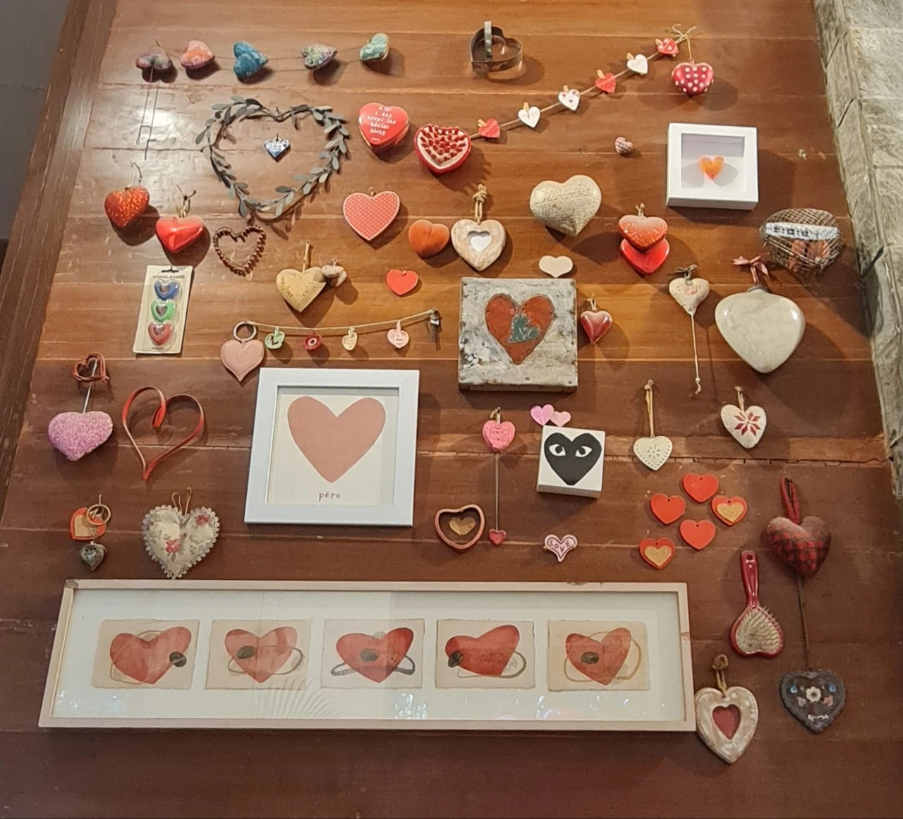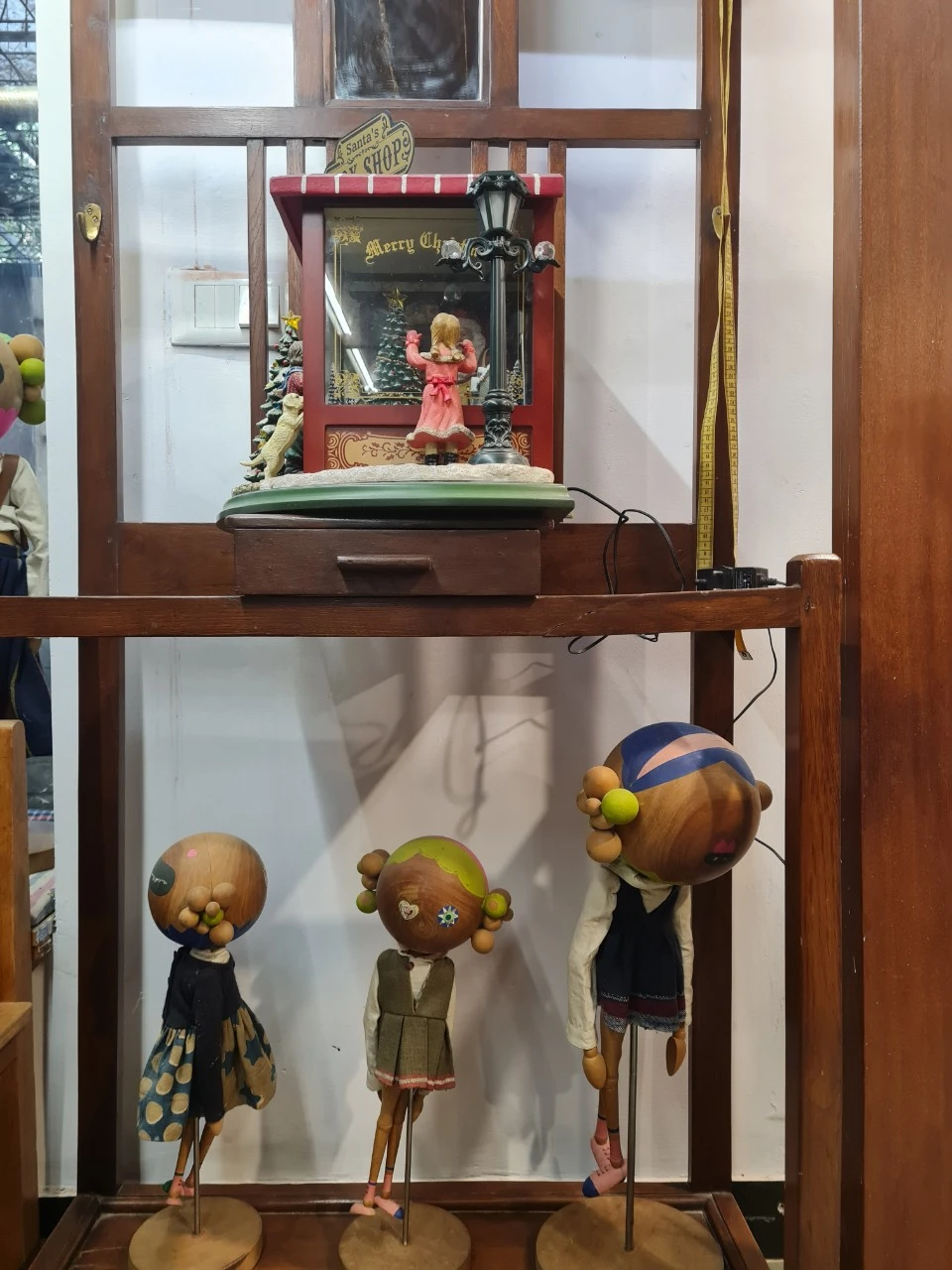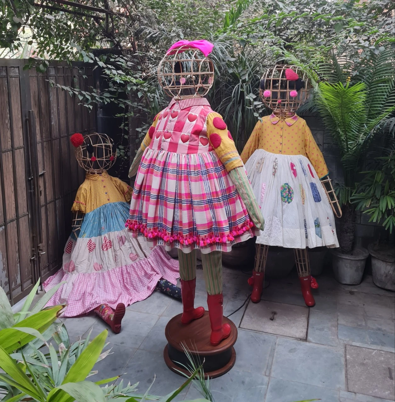 페로입구앞 대형 인형의 옷들이 페로의 핸드메이드제품을 잘 보여준다