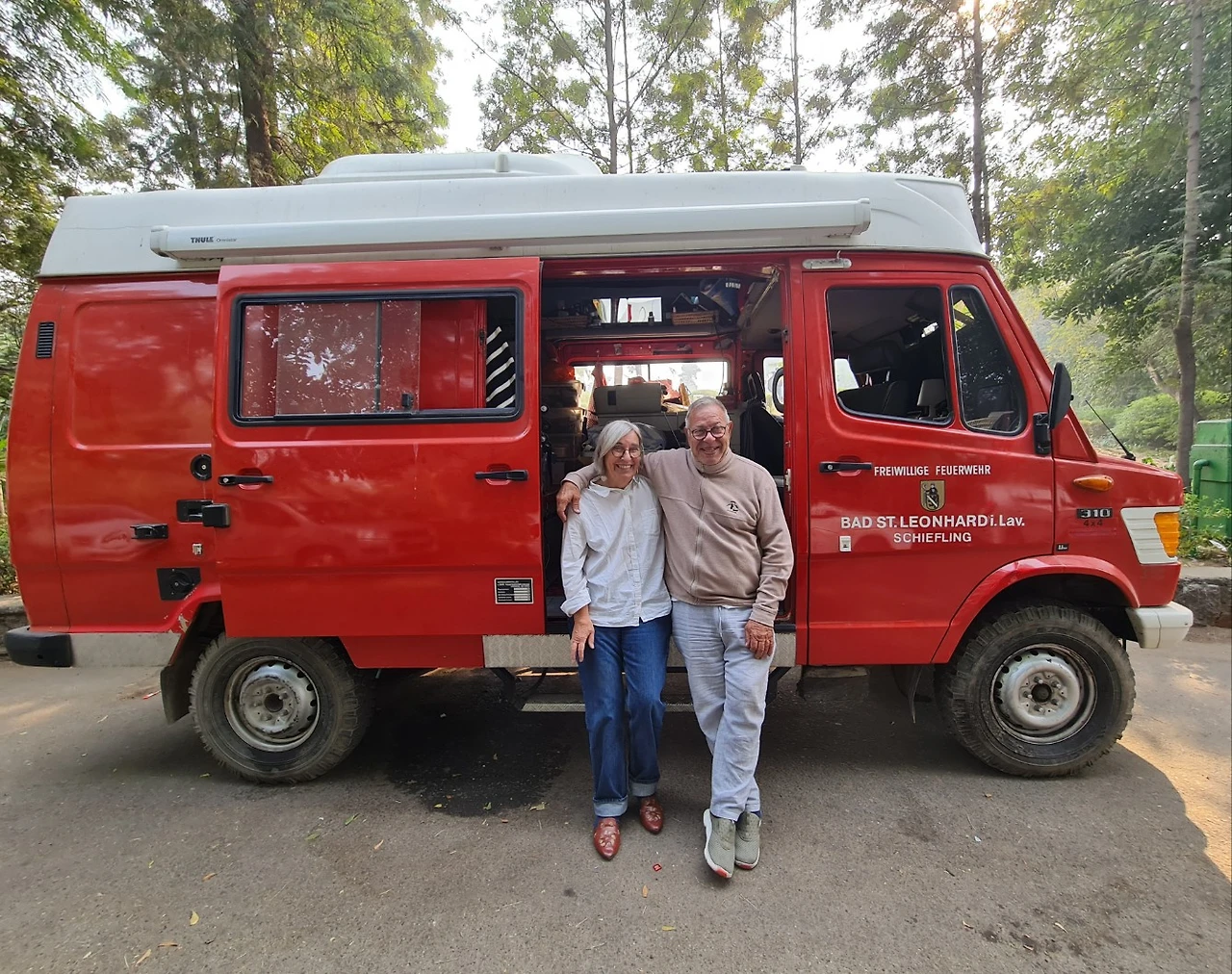 스페인 사람들로 올 5월부터 개조한 소방차를 끌고 인도까지 왔답니다. 놀랄따름입니다! 70대의 롤리타와 카를로스! 19살에 만나서 자녀들을 다 키우고 세계를 돌아다닙니다. 카를로스는 한국에도 몇번 방문 했었다고 합니다.