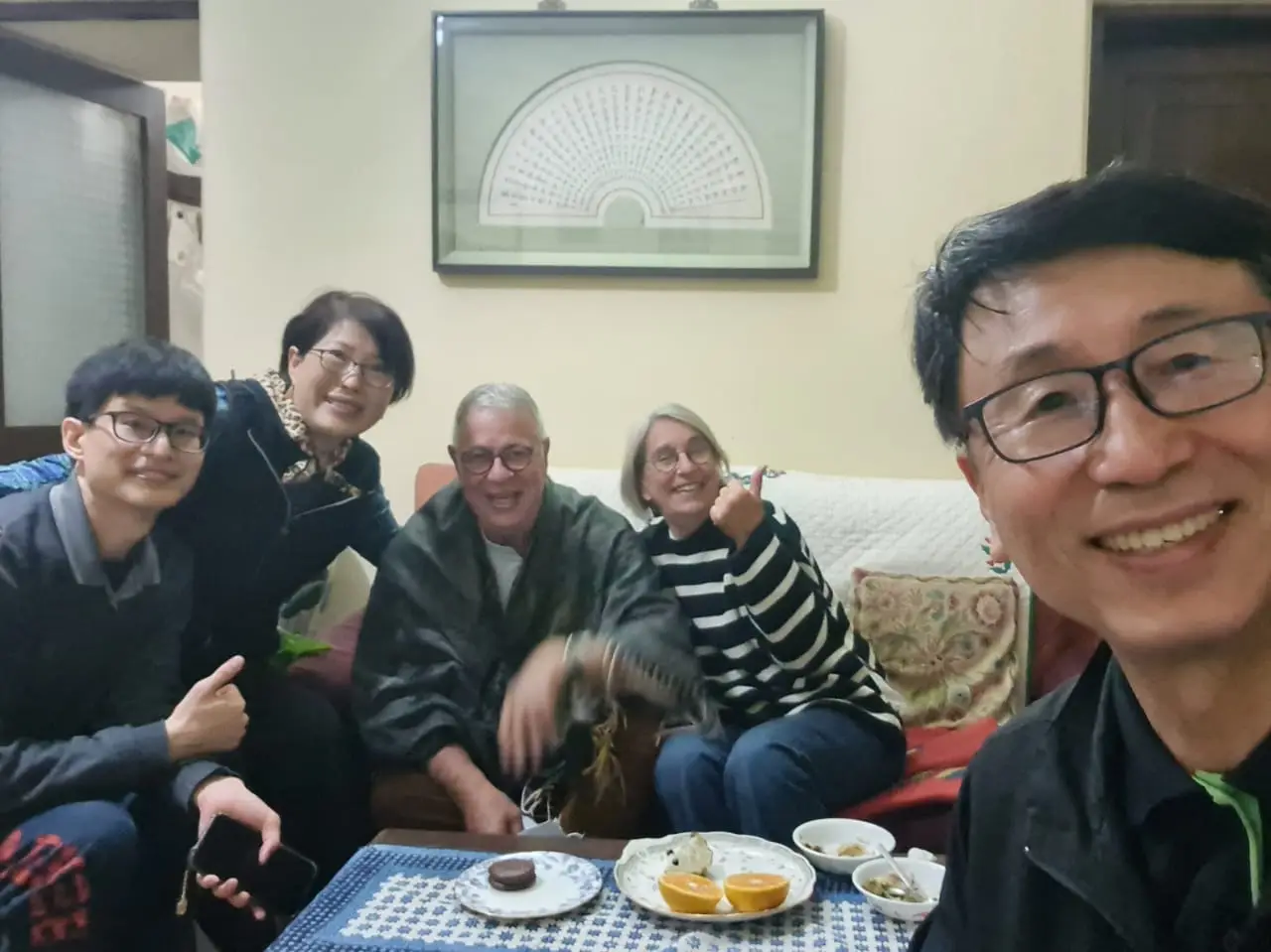 우리집으로 초대해서 다과회.카를로스가 감기기운이 있다고 먹는 것을 모두 사양합니다... 생강을 많이 넣은 차이와 사과를 갈아서 드렸습니다.